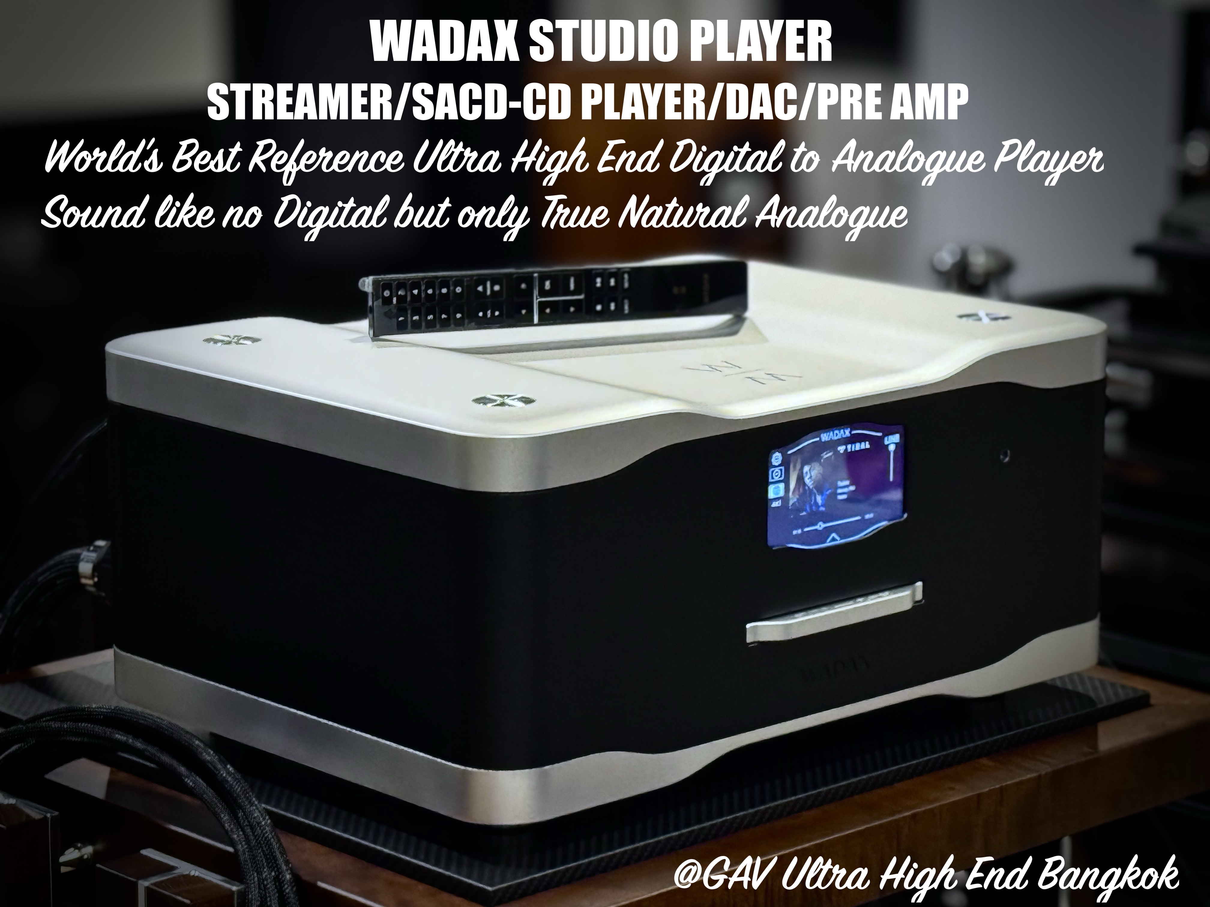 WADAX STUDIO PLAYER "World's Best Sound All in One Digital to Analog Source" ที่สุดของต้นทางเครื่องเล่นดิจิตอลทูอนาล็อค แบบ ออล-อิน-วัน ระดับอัลตร้าไฮเอ็นด์ อันดับหนึ่งของโลก เป็นทั้งเครื่องเล่นสตรีมเมอร์ และ เครื่องเล่น SACD/CD ให้เสียงที่ดีเยี่ยมไร้ความเป็นดิจิตอลเหนือกว่าเครื่องแยกชิ้นยี่ห้ออื่นๆมากมาย