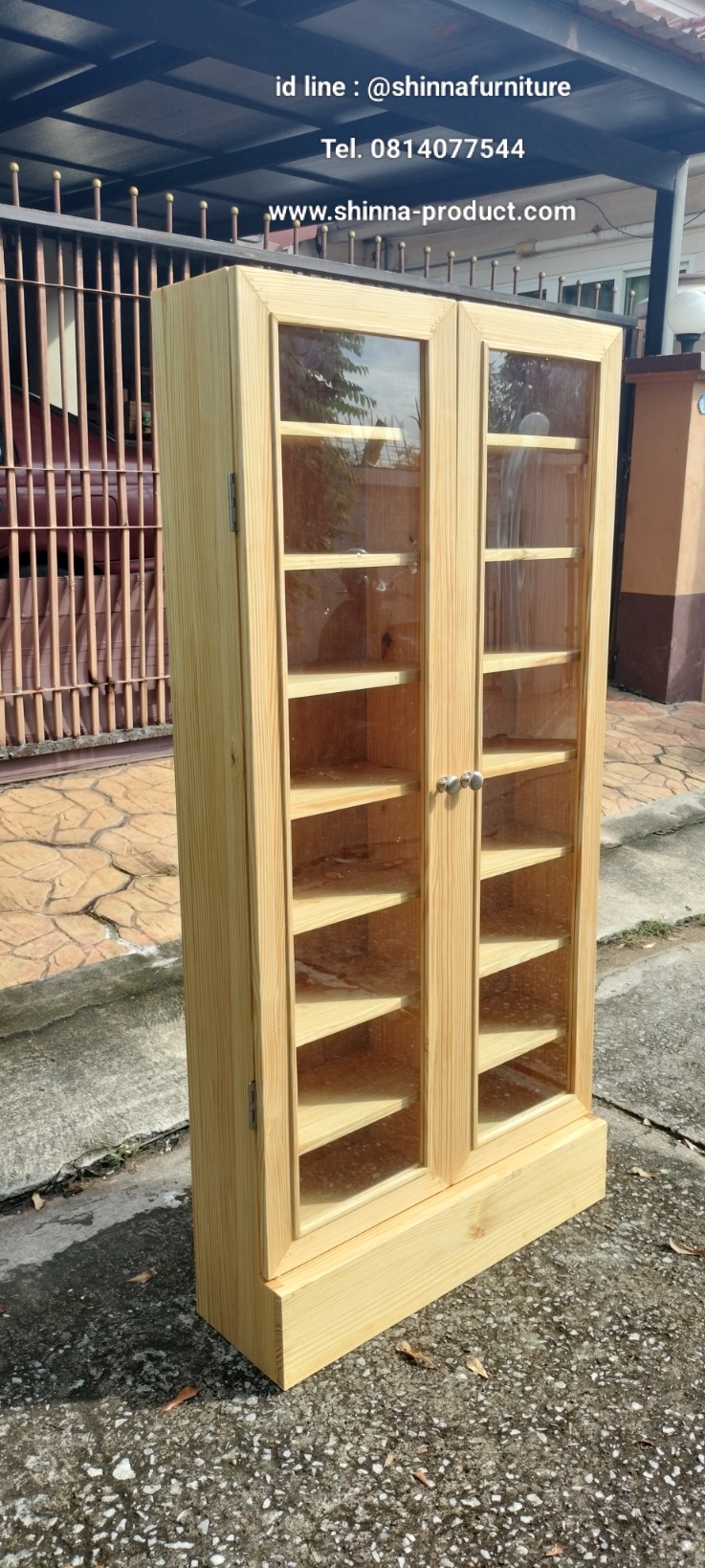 ตู้ไม้สนเก็บแผ่น cd audio บานกระจกคู่ ไม้แท้สวยๆ