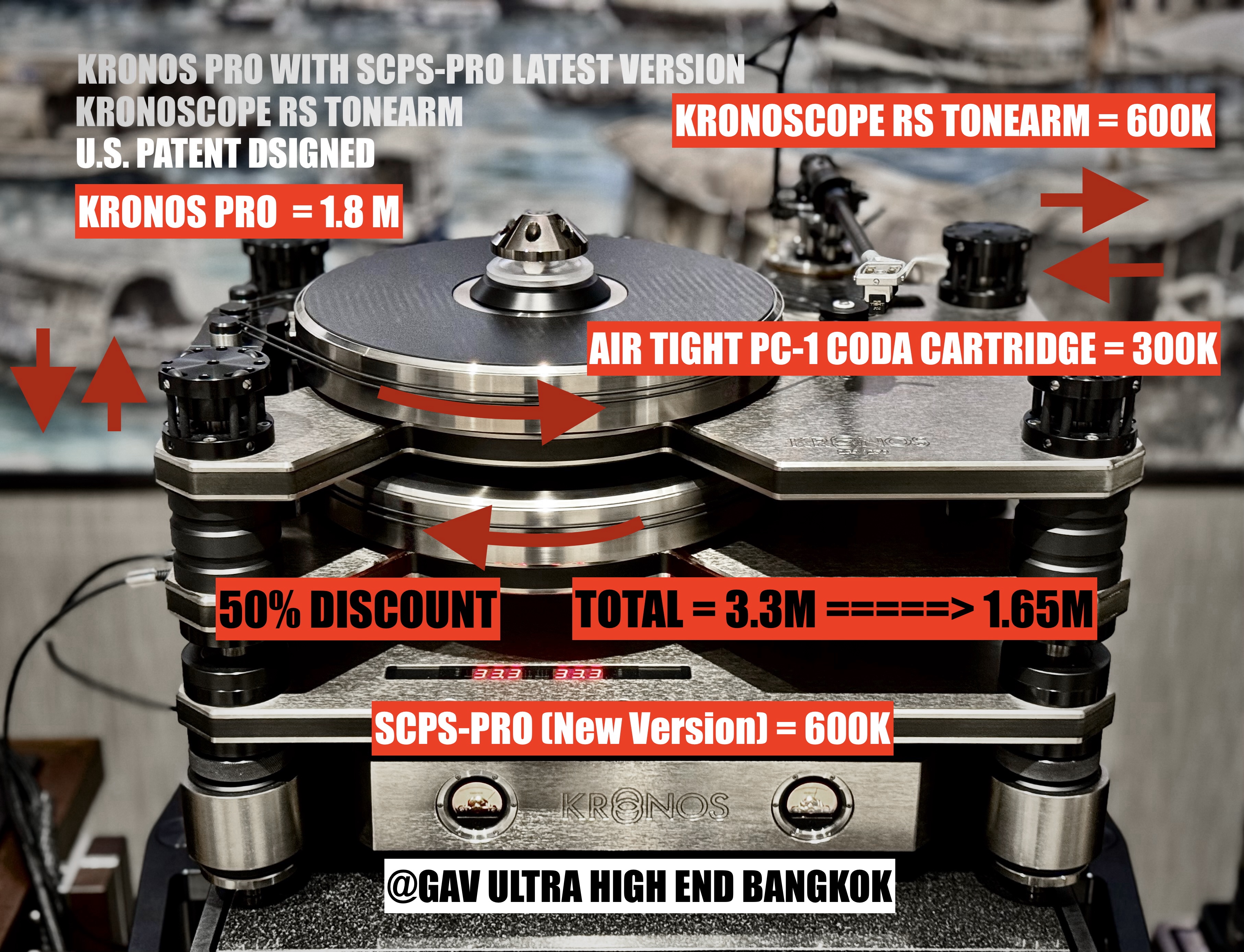 SHOCK PRICE ลดราคากว่า 50% !!! KRONOS PRO "Analogue Solution" ครบชุดพร้อมโทนอาร์ม 12 นิ้ว รุ่น KRONOSCOPE RS และ ภาคจ่ายไฟ Super Cacacitor รุ่น SCPS-PRO เวอร์ชั่นล่าสุด พร้อมหัวเข็ม AIR TIGHT รุ่น PC-1 CODA รวมทั้งชุด จากราคาเต็ม 3.3 ล้าน เหลือเพียง 1.65 ล้านบาท เท่านั้น !!! นำเข้า และ จัดจำหน่าย โดย GAV Ultra High End Bangkok โทร หรือ แอดไลน์ มาที่ 081 4423549