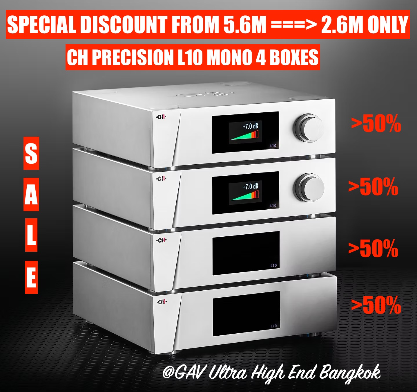 ลดแล้ว ลดอีก จนกว่าคนซื้อจะทนไม่ได้ ถูกไปมากถึง 3 ล้าน จากราคาปรกติ พบกับสินค้าจัดรายการปรับลดราคาพิเศษจุใจ ในมุมลดล้างสต็อค CH PRECISION L10 Mono 4 ตัวถัง ปรีแอมป์ตัวท็อปรุ่นใหม่ล่าสุดของยี่ห้อนี้ สภาพเหมือนใหม่แกะกล่อง แทบไม่ได้เปิดเล่น
