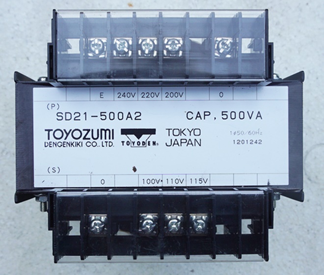 หม้อแปลง Isolate Toyozumi ไฟออก 100 -110-115 Volt ไฟเข้า 0-220-240 Volt ขนาด 500 W