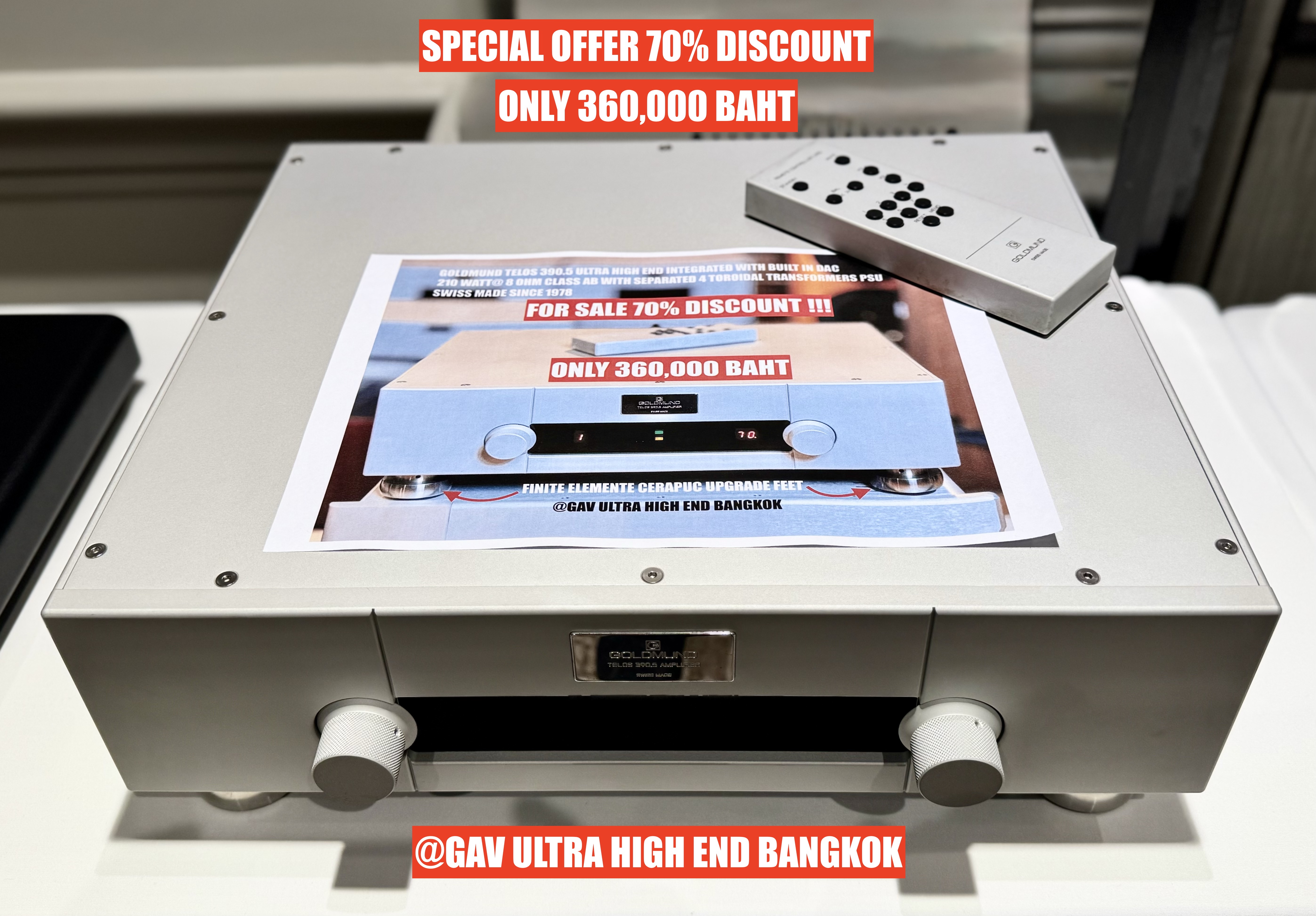 อินทิเกรตแอมป์ที่ดีที่สุดในโลก GOLDMUND รุ่น TELOS 390.5 มาพร้อมภาค DAC ในตัว กำลังขับเหลือเฟือ 210 วัตต์ ที่ 8 โอมห์ CLASS AB , ให้เสียงดีเยี่ยม ลดราคาพิเศษ 70% เหลือเพียง 360,000 บาท เท่านั้น มีของแถมฟรี มูลค่ากว่า 30,000 บาท !!! ท่านใดสนใจ โทร หรือ ทักไลน์ มาที่ 081-4423549 ครับ