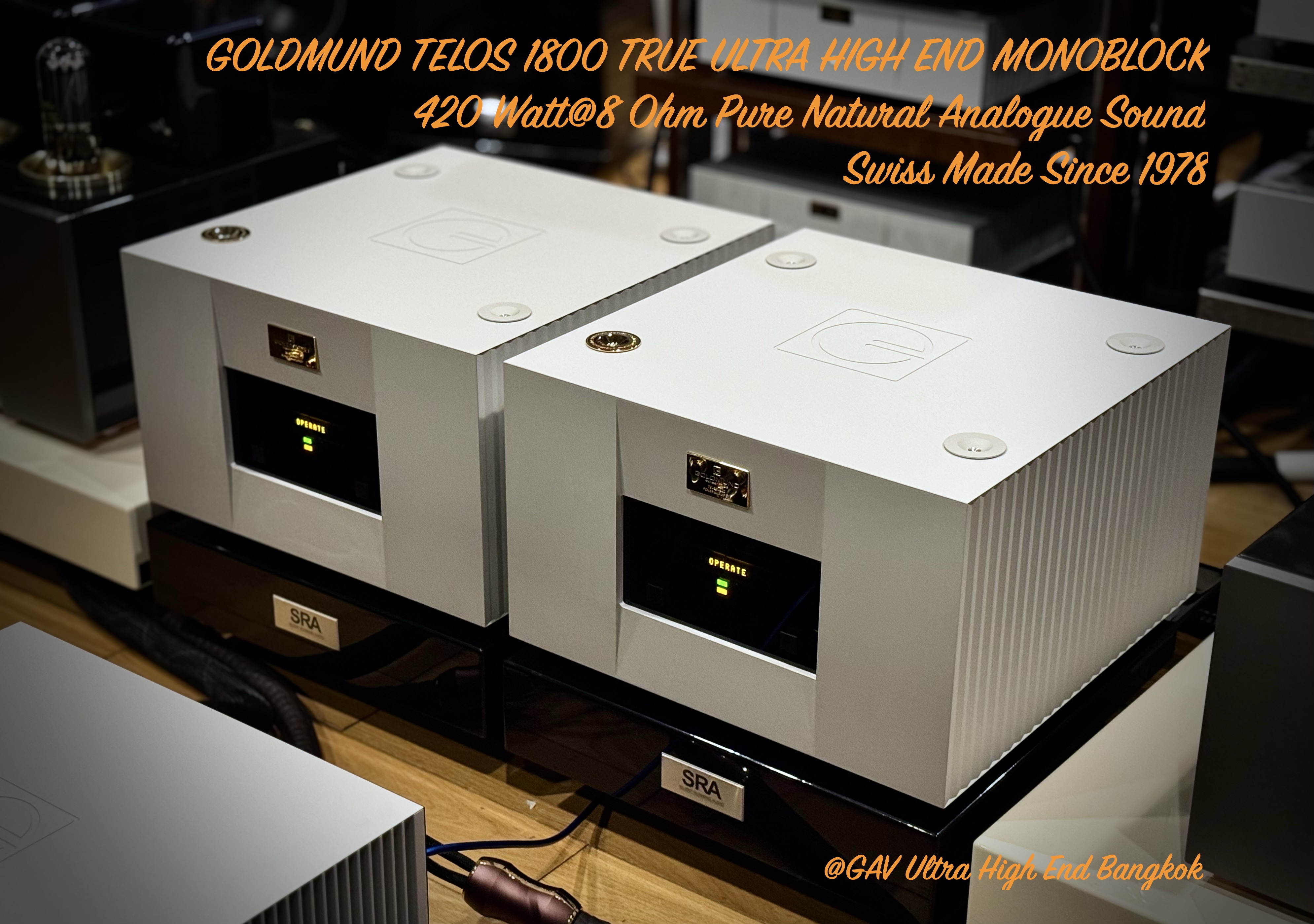World's Best Reference true Ultra High End Audio Products ,GOLDMUND TELOS 1800 Monoblock, 420 Watt@8 Ohm ,Class AB ที่สุดของแอมป์โมโนบล็อคแท้ๆระดับอัลตร้าไฮเอ็นด์ ต้นแบบเครื่องเสียงจากสวิส นับตั้งแต่ปี คศ.1978 .นำเข้า และ จัดจำหน่าย โดย GAV Ultra High End Bangkok โทร หรือ แอดไลน์ มาที่ 081 4423549