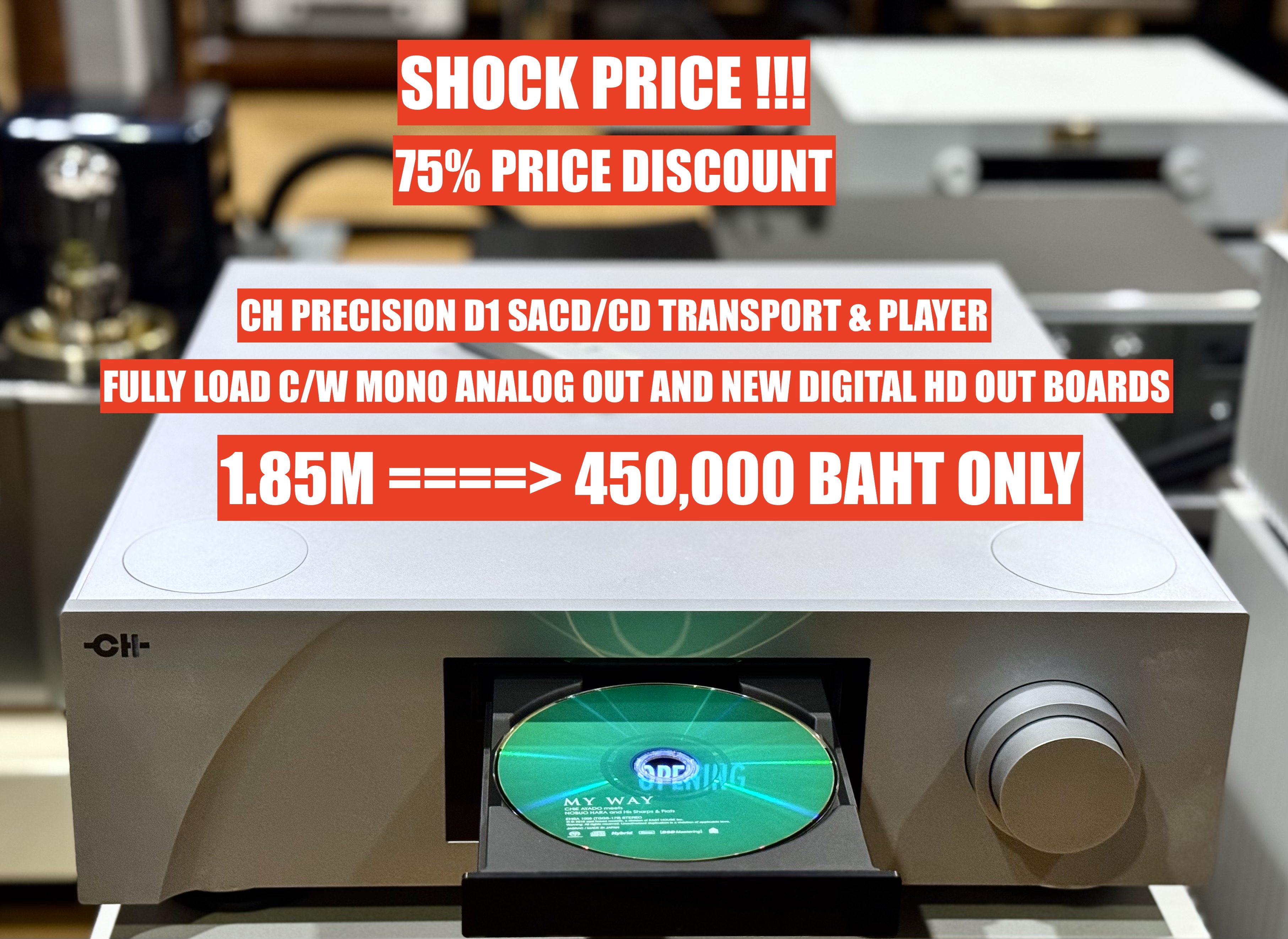 ลดราคากว่า 75% ถูกกว่านี้ไม่มีแล้วครับ YEAR END GRAND SALE 2025 เครื่อง CH PRECISION D1 CD& SACD Player & Transport ( without original box ) จัดเต็ม Fully loaded Option Analog Out Left/Right Boards ,อัพเกรดบอร์ดดิจิตอลใหม่รองรับระบบเสียง MQA , นำเข้า และ จัดจำหน่าย โดย GAV Ultra High End Bangkok โทร หรือ แอดไลน์ มาที่ 081 4423549