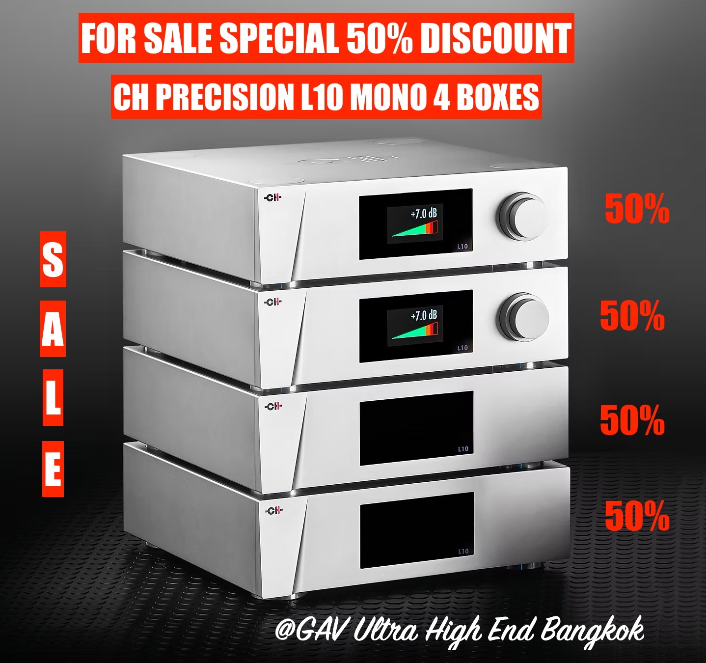 ถูกกว่านี้ไม่มีแล้ว SALE 50% Discount !!! CH PRECISION L10 MONO PRE AMP รุ่นท็อปปัจจุบันสุงสุดของยี่ห้อนี้ BIG Discount on Current Flagship CH PRECISION 10 Series ,L10 MONO PRE AMP (4 Boxes) separate PSU one for each separate Left/Right signal channel.