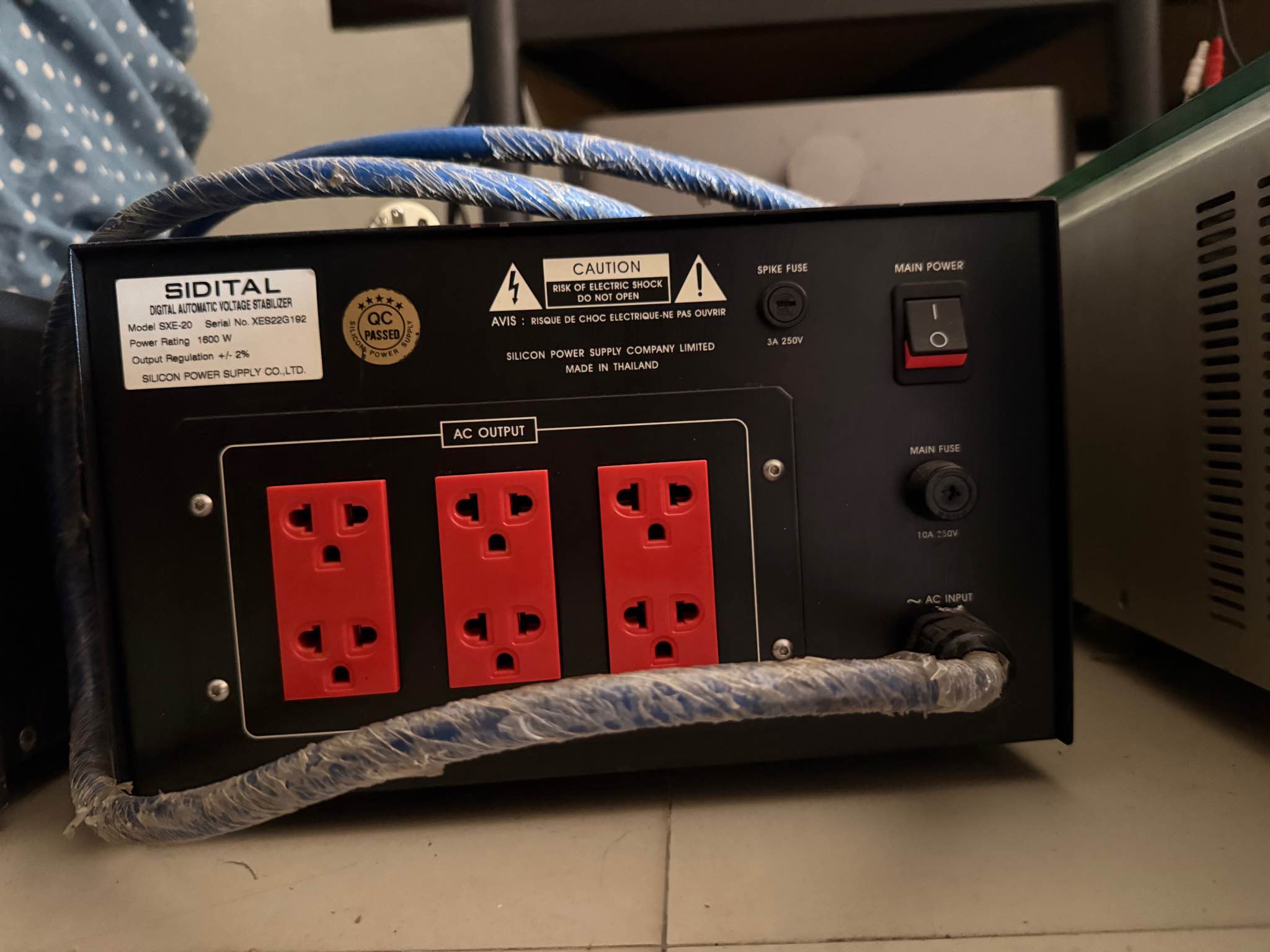 SIDITAL SXE-20 Digital Automatic Voltage Stabilizer and Line Conditioner เครื่องคุมกระแสไฟฟ้าไม่ให้ตกหรือเกิน กันไฟกระฉาก แล้วยังกรอง Noise ออกจากกระแสไฟบ้านทำให้กระแสไฟที่เข้าเครื่องเสียงบริสุทธิ์ที่สุด คุมกระแสไฟไม่ให้กระฉากเพื่อป้องกันเครื่องเสียงเสียหาย หน้าจอเป็นไฟ Led ใช้หม้อแปลง 2 ตัวในการทำงาน มี Outputs ถึง 6 ช่อง กำลัง 1600 watts เป็นของมือสองสภาพดีเยี่ยมทั้งภายในภายนอก Sidital ออกแบบสำหรับเครื่องเสียงโดยเฉพาะ ตัวเครื่องให่ญและหนักมากครับ