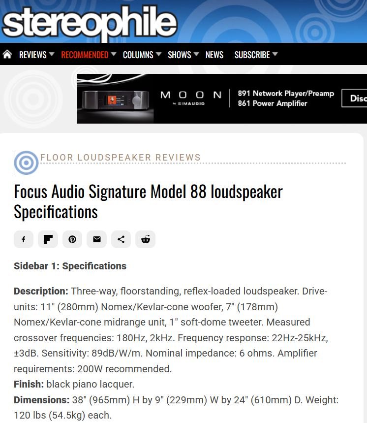 ขายลำโพง Focus Audio Signature Model 88 รุ่นใหญ่ตั้งพื้น 3 ทาง (Stereophile Recommended)
