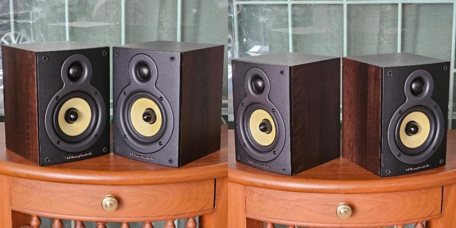 WHARFEDALE Crystal 4.1 ลำโพงวางหิ้ง 2 ทางจากดินแดนผู้ดีประเทศอังกฤษ ติดตั้งดอกลำโพงเสียงสูงแบบ Soft Dome Tweeter ขนาด 1 นิ้ว และดอกลำโพงเสียงทุ้มกลางแบบ Keflar Cone Woofer ขนาด 4 นิ้วแกนกลางหัวกระสุน รับพลังเสียงได้ 60 วัตต์ต่อข้าง ด้วยความไวต่อเสียง Sensitivity ที่สูงถึง 95dB(Peak SPL) ตัวตู้ผลิตจากไม้ธรรมชาติสี Dark Walnut ลวดลายสวยงามเป็นอย่างมาก ตัวตู้มีขนาดใหญ่พอสมควร กว้าง 15 สูง 20 ลึก 16 ซม. หนักประมาณ 2 กก.