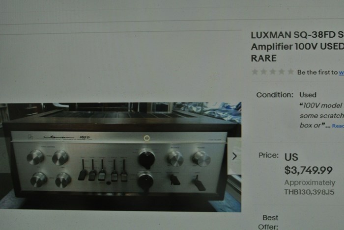 LUXMAN SQ-38FD Mk II ผลิต Japan เพื่อวางจำหน่ายเฉพาะในญี่ปุ่นเท่านั้น จึงใช้ระบบไฟฟ้า 100V ที่หาไม่ได้อีกแล้วในปัจจุบัน ตัวเครื่อง และกล่องไม้ธรรมชาติ ยังอยู่ในสภาพที่ดีมาก หลอดยังมี Gain ดีมาก ปุ่มควบคุมการทำงานทั้งหมด ยังใช้งานได้เป็นปกติ
