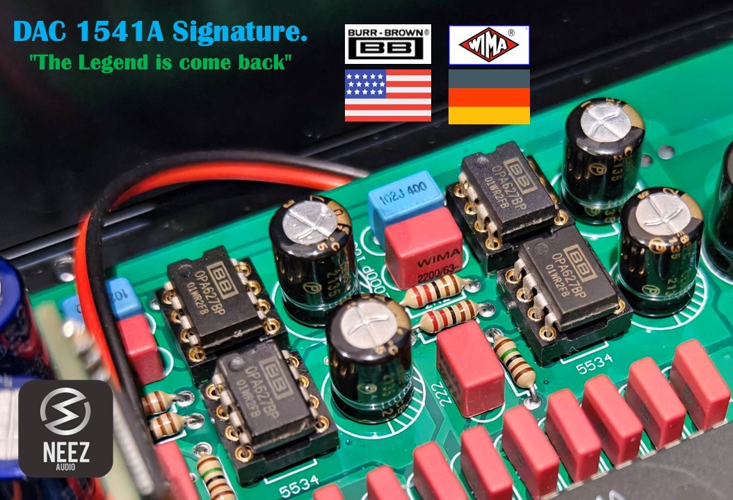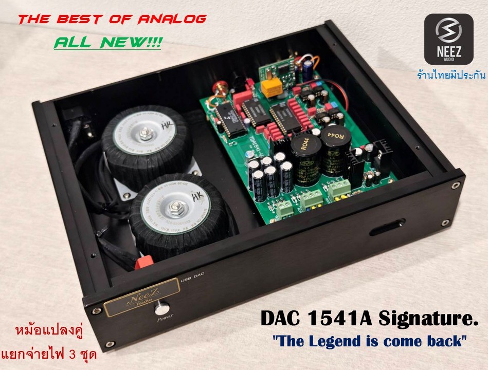 DACตัวนี้ทางเราได้เฟ้นหาอุปกรณ์ต่างๆทุกชิ้นอย่างแมตซ์กันที่สุด คุณภาพสูงที่สุด ในราคาที่จับต้องได้ โดยเริ่มจากชิปDACของ TDA1541A (PHILIPS)แท้ๆที่หาได้ยากยิ่งนักซึ่งราคายังสูงมากอีกด้วย และชิปของ CS8412 (Cirrus Logic) ,SAA7220P/B (PHILIPS) ซึ่งP/Bนั้นเป็นรุ่นที่สูงกว่าตัวP/A ผลทำให้ชิปทุกตัวทำงานร่วมกันอย่างเข้าขาลงตัวที่สุดในแบบอย่างที่ควรจะเป็น เรายังได้เพิ่มเติมเพื่อให้เข้ากับยุดสมัยด้วยการออกแบบให้สามารถรับInput USBได้ด้วยทำให้สามาเพิ่มช่องทางการเชื่อมต่อได้อีก โดยใช้ชิป PCM2704 (Burr-Brown) และเพื่อให้มั่นใจว่าคุณภาพเสียงที่ส่งออกไปจะได้ความเป็นตำนานอย่างครบถ้วนสมบรูณ์ และได้แนวเสียงตามที่เราต้องการเราจึงใช้BB OPA627BP (Top Class, King Of Voice)จำนวนถึง 4ตัว อุปกรณ์ต่างต่างๆล้วนเป็นออดิโอเกรดทที่คัดเลือกมาอย่างลงตัว อาทิเช่น Capacitor for Audio : Nover LA Cap ,ELNA SILMIC II ,RIFA , Matsushita F , WIMA ... สิ่งที่ขาดไม่ได้คือภาคจ่ายไฟที่มีความเสถียรสูง สัญญาณรบกวนต่ำ พร้อมจัดเต็มโดยการแยกภาคจ่ายไฟเป็น 2ชุด เพื่อให้ได้คุณภาพเสียงสูงสุดด้วยไดโอดแบบ Ultra Fast Diode , LM317T...หม้อแปลง Toroidal Transformer Ultra low noise 2 ตัว และการส่งต่อสัญญาณที่ดีเยี่ยมด้วยขั้วต่อ RCA ชุบทองอย่างดีจากไต้หวัน ดังนั้นท่านจึงมั่นใจในคุณภาพเสียงของ DAC 1541A Signature.อย่างไม่ต้องสงสัย!!!