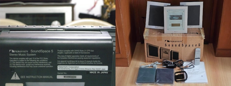NAKAMICHI SoundSpace 5 ผลิต Japan สำหรับวางจำหน่ายในประเทศญี่ปุ่น ที่มีมาตรฐานเหนือกว่ารุ่นที่ส่งมาขายในกลุ่มประเทศเอเซีย รวมทั้งบ้านเรา จึงใช้ระบบไฟฟ้า 100V ที่หาไม่ได้อีกแล้วในปัจจุบัน ตัวเครื่อง Music Center ลำโพง Satellite ยังอยู่ในสภาพที่ดีมาก ปุ่มควบคุมการทำงานทั้งหมด ยังใช้งานได้เป็นปกติอย่างมีประสิทธิภาพ มี Remote Control ขนาดเล็ก คู่มือการใช้งาน พร้อม AC Adaptor ตรงรุ่นของแท้ให้ด้วย