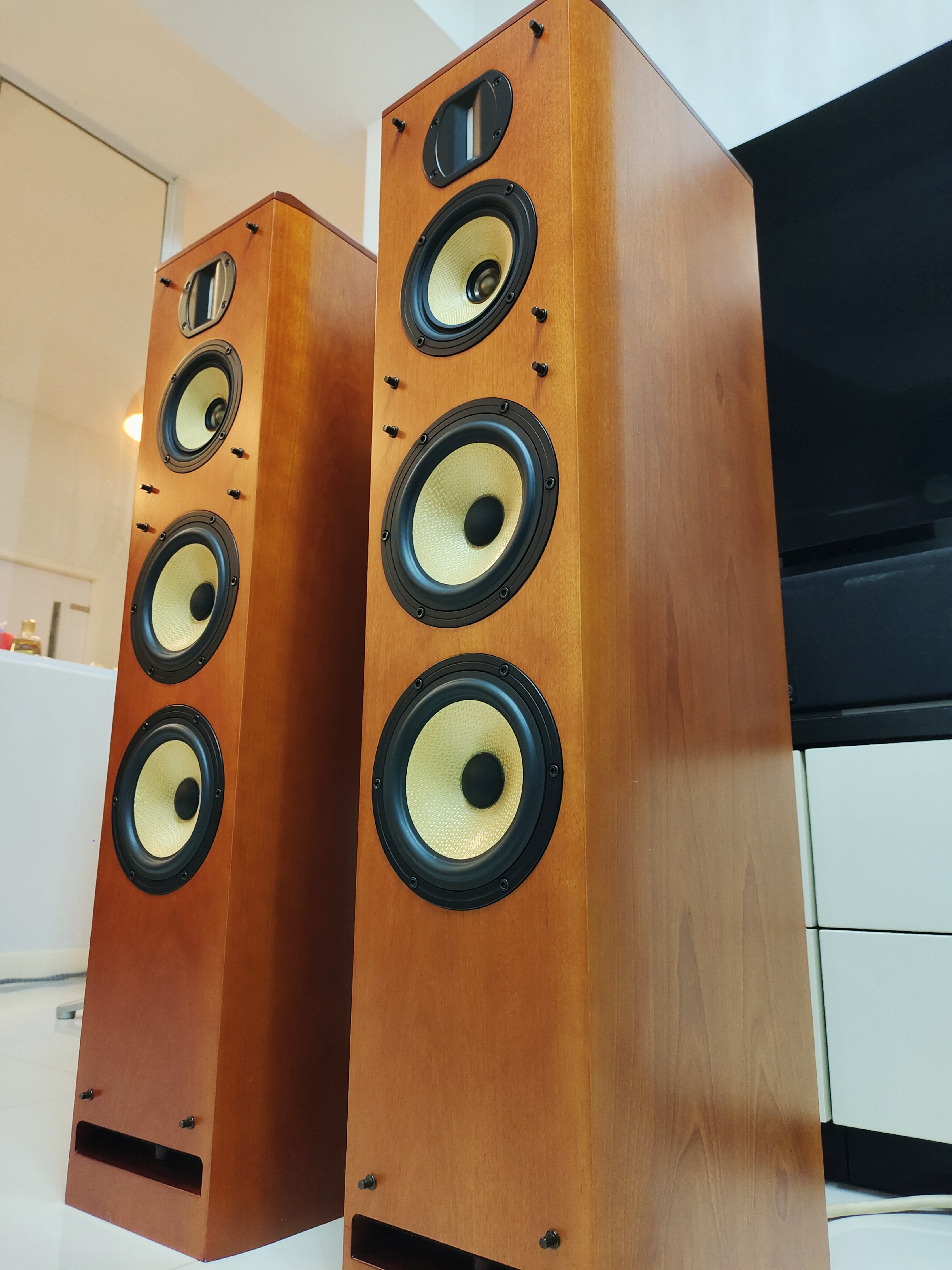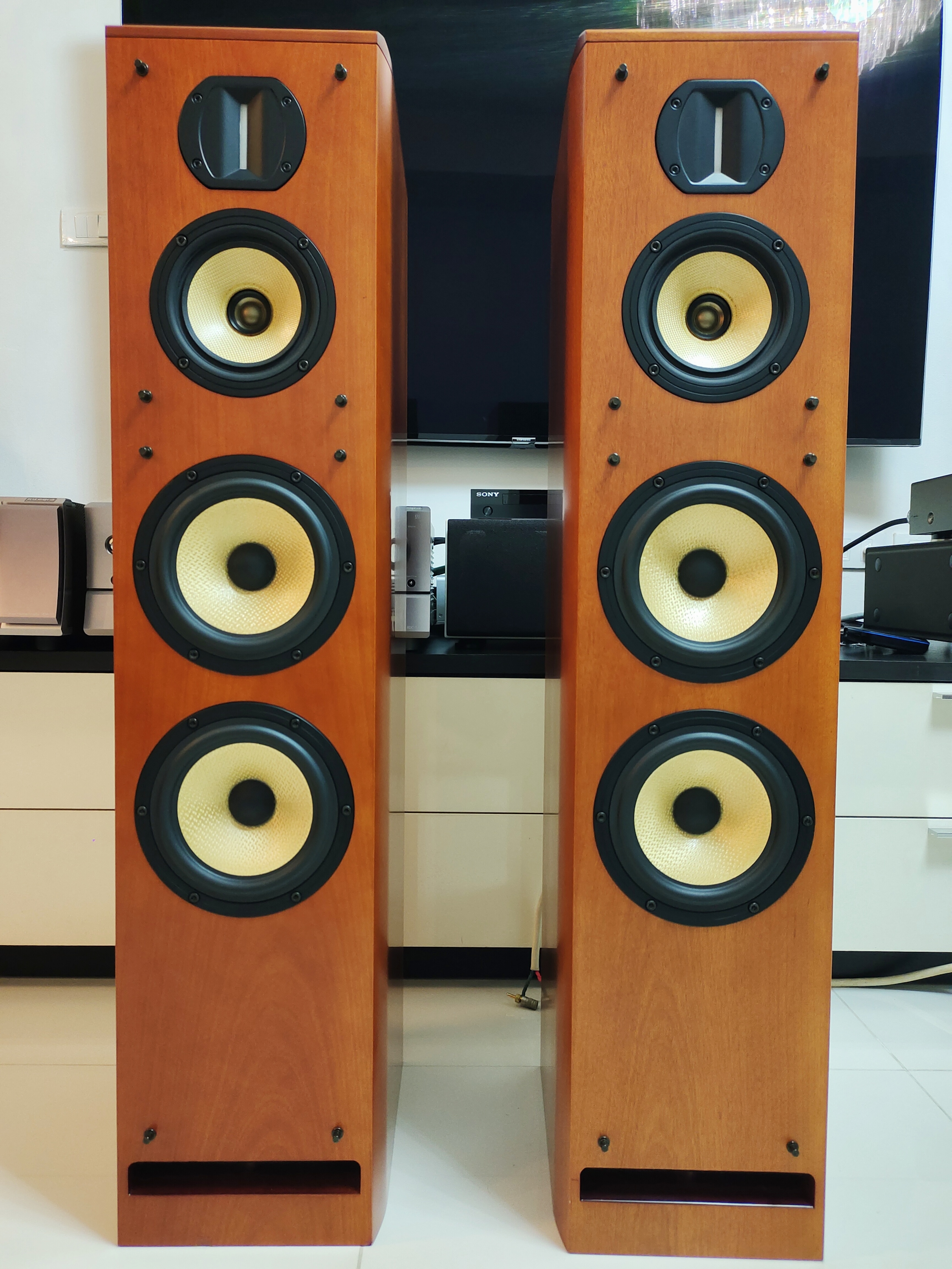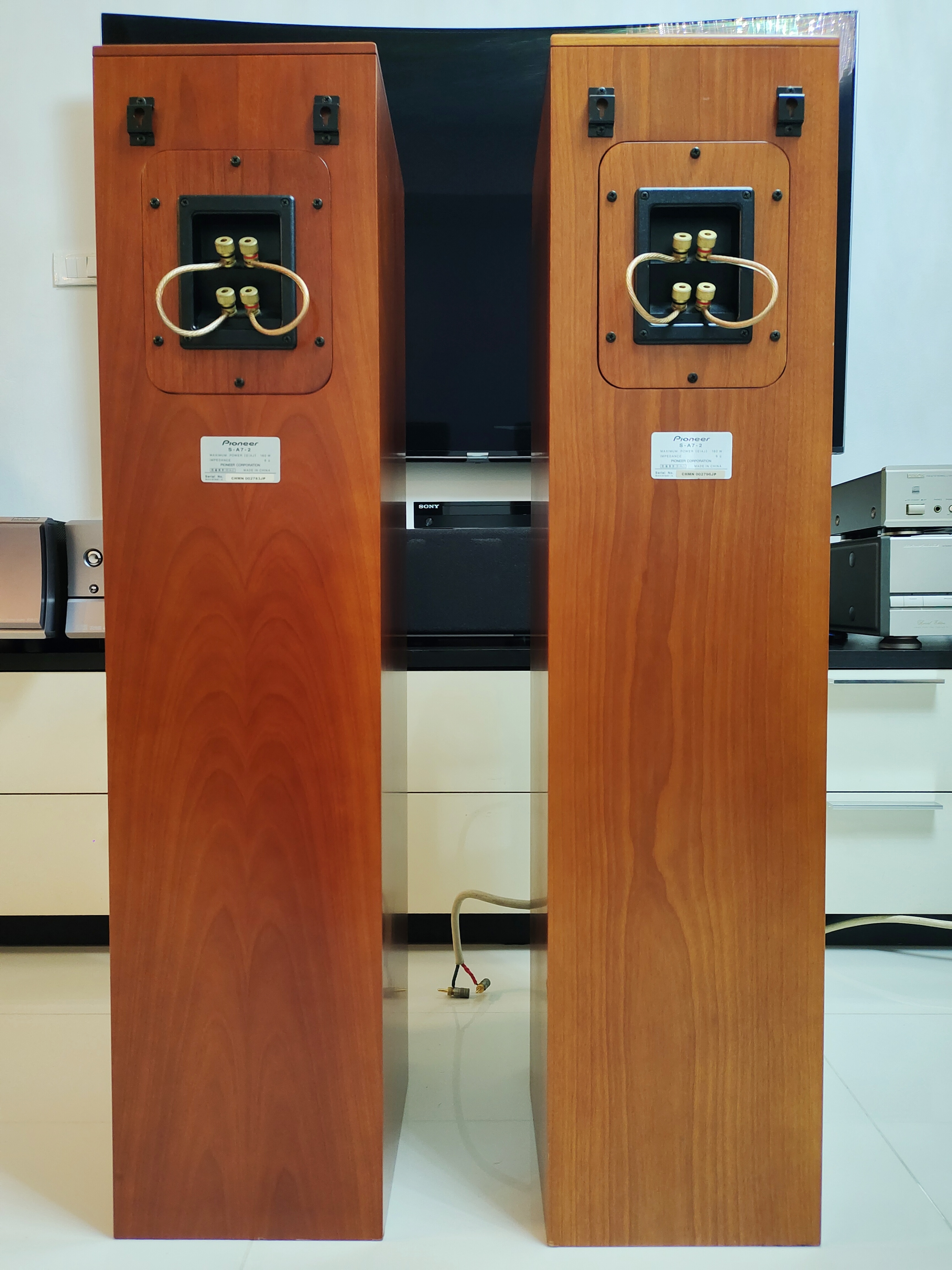 ขายลำโพง TOWER PIONEER S-A7-2 (รุ่นปรับปรุง) รุ่น top สุด ชีรี่สูง ระดับบน เเบบ 4 ทาง สภาพสวยงาม คัดเกรดสะสม เสียงดีมากทั้งดูหนังเเละฟังเพลง จบในคู่เดียว ผิวลายไม้สักสีเชอร์รี่ สวยงาม ตู้ไม้หนาเเละหนักมาก ดอกสวยเดิมๆ ขนาด 6.5" วัสดุเคฟล่า 6 โอห์ม / 91dB / 160วัตต์ ขับง่ายไม่กินวัตน์ ขนาดภายนอก กว้าง 230x สูง 1,000x ลึก 338 มม. น้ำหนัก 26.5กก. / ลำโพงมีขายเฉพาะในญี่ปุ่น นำเข้า Japan