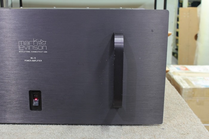 MARK LEVINSON ML-9 Power Amplifier รุ่นใหญ่ระดับ Hi-End ที่ให้พลังเสียงได้สูงสุดถึง 200 วัตต์ต่อข้าง รูปแบบดีไซน์เข้มขลังดุดันด้วยตัวเครื่องสีดำ ที่สำคัญยังเป็นเครื่องเสียงเพียงไม่กี่ยี่ห้อ ที่มีหูจับ Rack Mouting ขนาดใหญ่ทั้งด้านหน้า และด้านหลัง สำหรับใช้ดันเข้า และดึงออกจาก Rack ใน Studio เพื่อเพิ่มความสะดวก และผ่อนแรง ตัวเครื่องมีขนาดใหญ่โตมโหฬาร และหนักมากยกคนเดียวไม่ไหว กว้าง 49 สูง 22 ลึก 34 ซม. น้ำหนักประมาณ 30 กก.