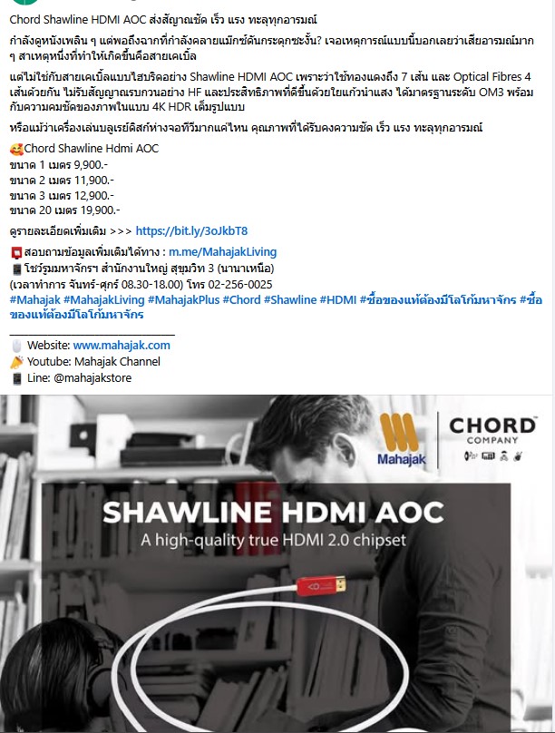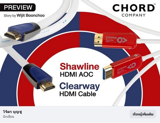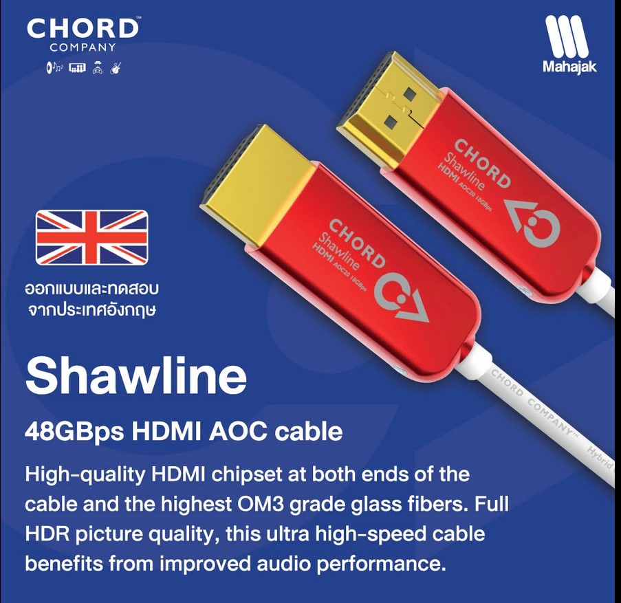 CHORD SHAWLINE HDMI AOC 4K ยาว 10เมตร มือเดียวจากห้าง เหมือนใหม่ยกกล่องเบิกศูนย์ไทย 15900.-เจ้าของส่งมาขายหน้าร้านถูกที่สุดลด 10000.-เหลือเพียง 5900.-เท่านั้น