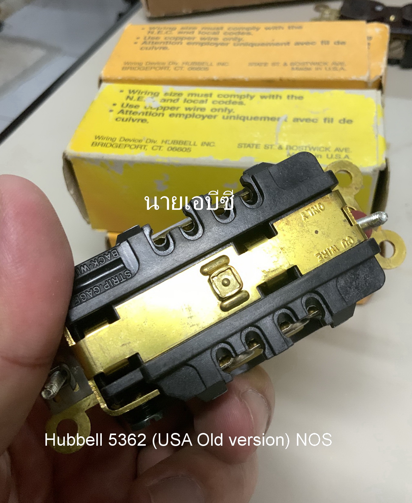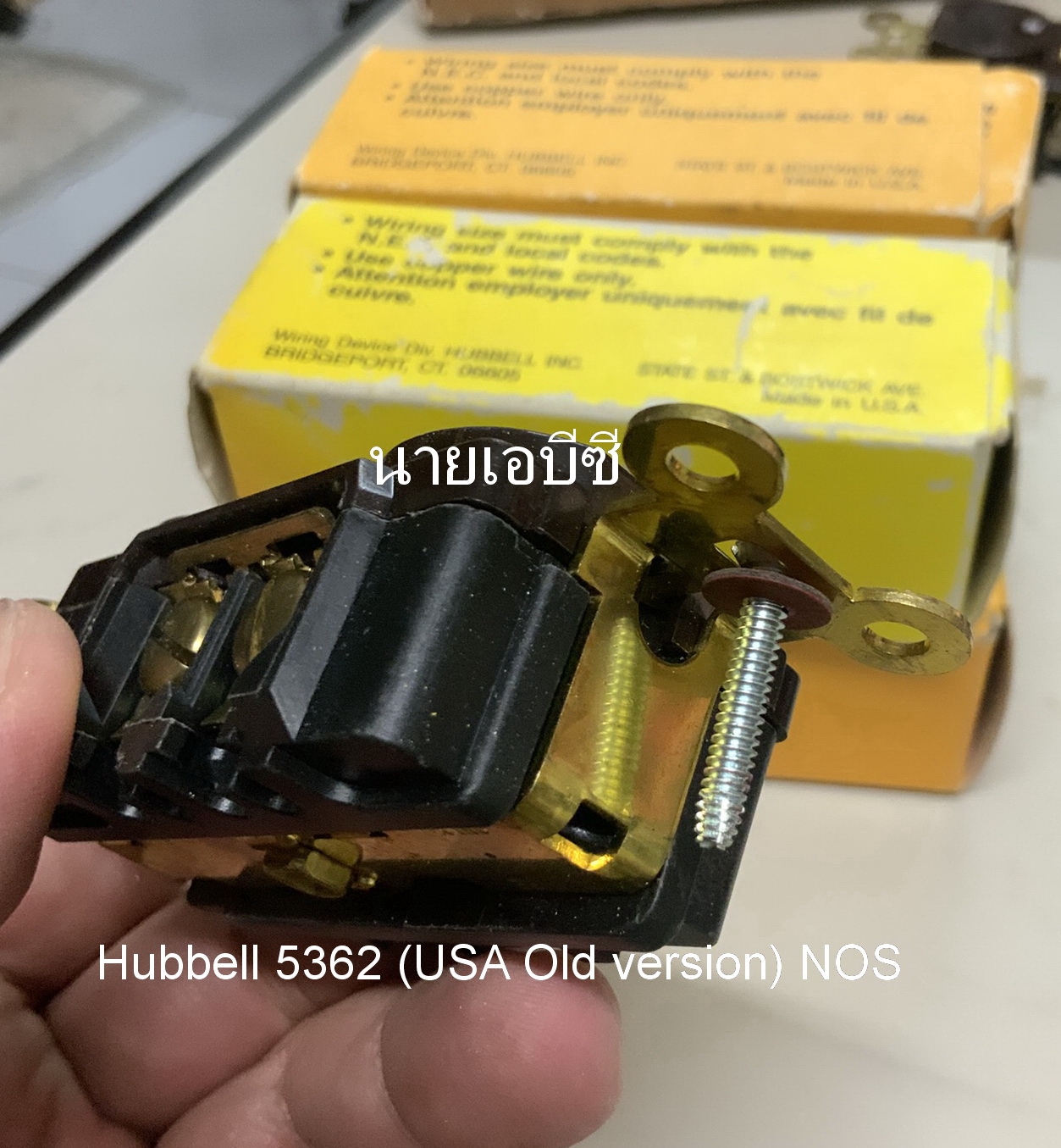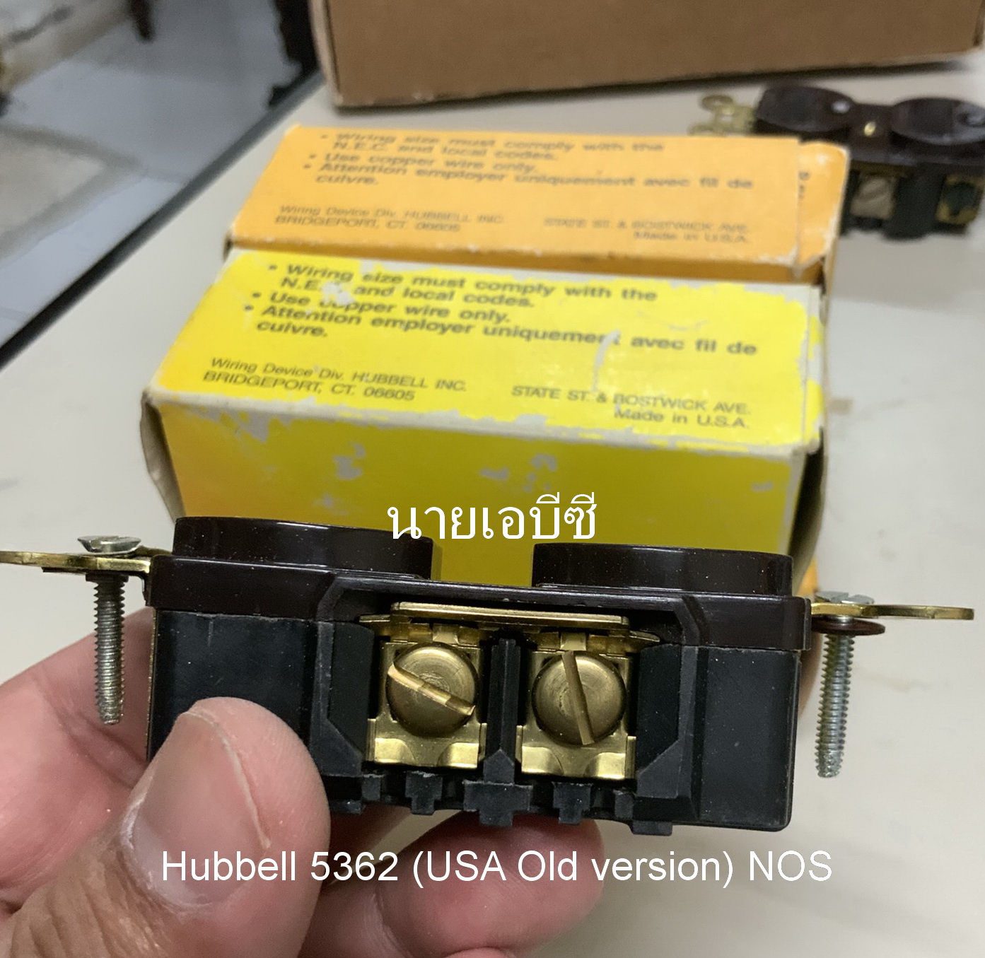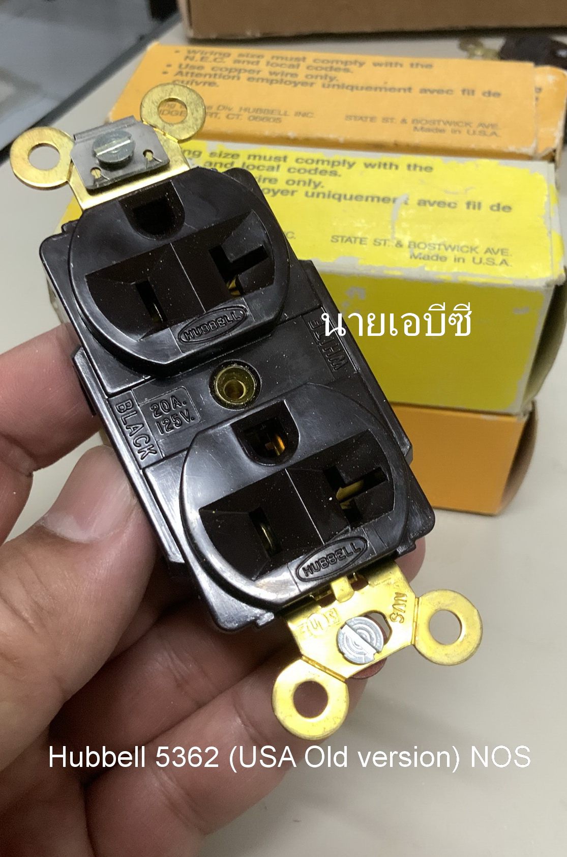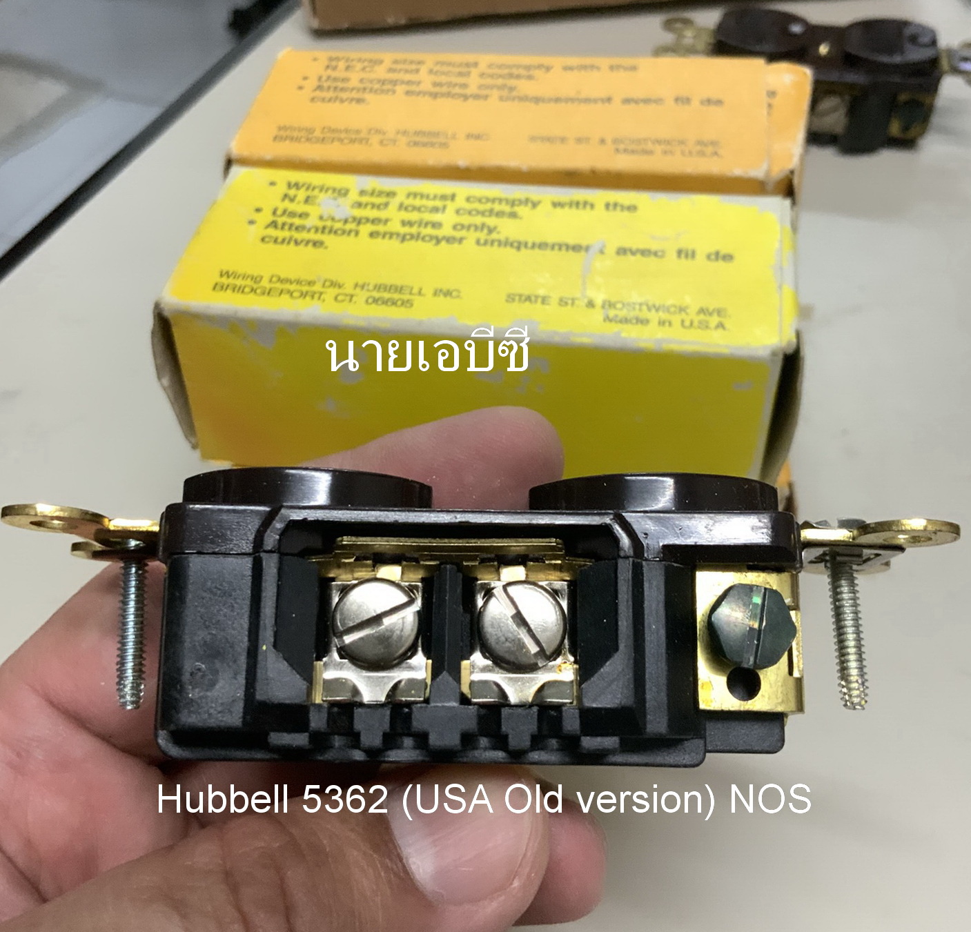 ปลั๊กผนัง Hubbell 5362 (USA รุ่นเก่า สกรูแบน) NOS สีน้ำตาล 20A