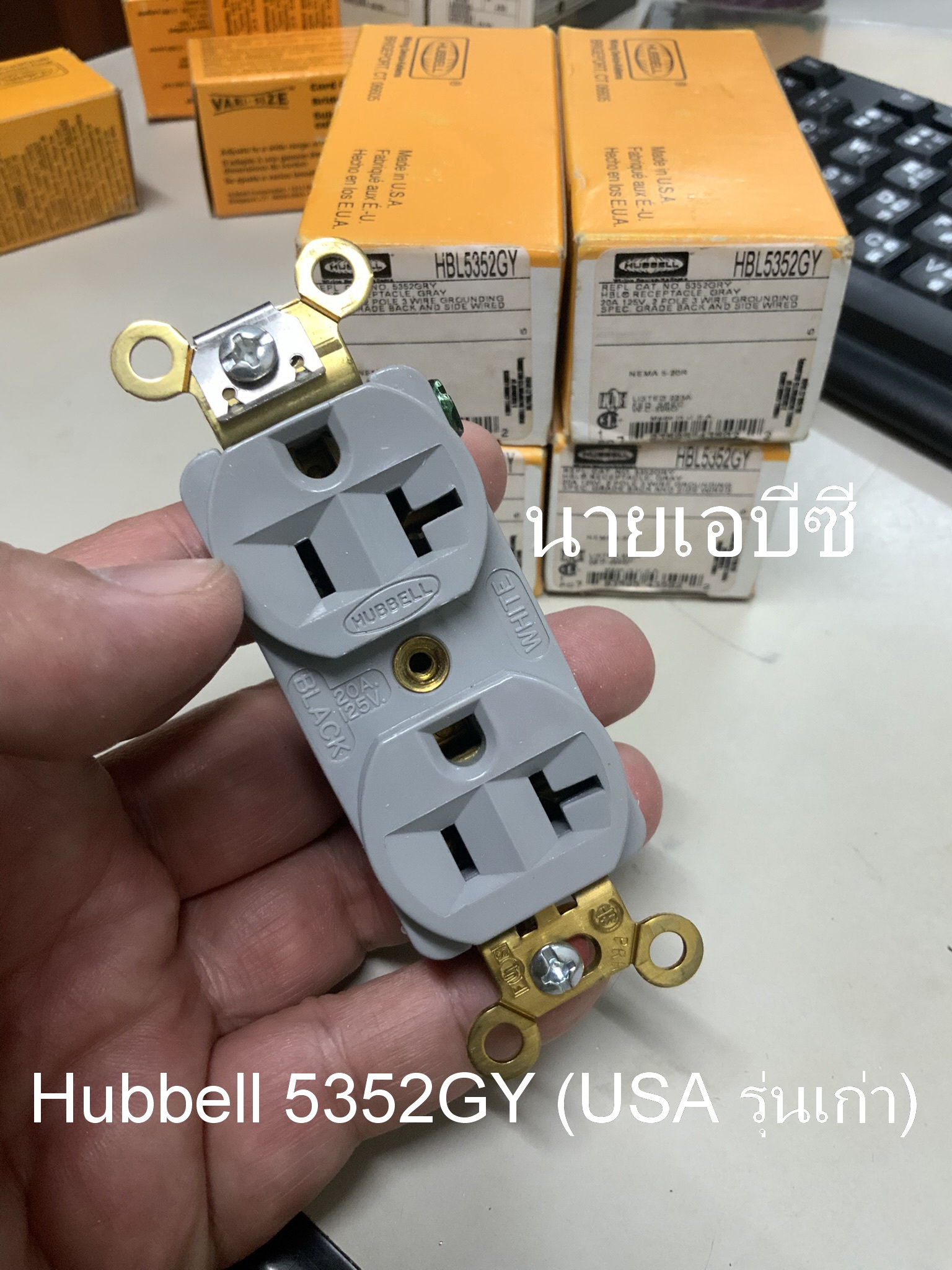 ปลั๊กผนัง Hubbell 5352GY (USA รุ่นเก่า) NOS สีเทา 20A