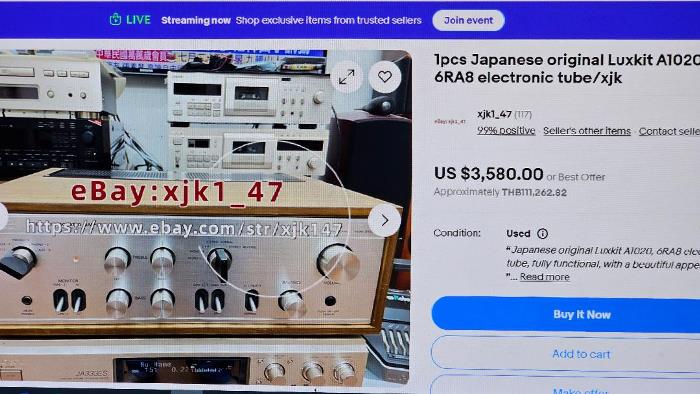 1. LUXMAN/LUXKIT A-1020 Vacuum Tube Integrated Amplifier รุ่นใหญ่ระดับตำนานที่หาได้ยากสุด ๆ ด้วยรูปแบบดีไซน์สุดแสนคลาสสิค ตัวเครื่องสีทองแชมเปญ หุ้มรอบตัวเครื่องด้วยกล่องไม้ธรรมชาติสี Walnut ลวดลายสวยงาม ภายในตัวเครื่องยังติดตั้งแต่อุปกรณ์ และวงจรที่คัดสรรมาแต่ Audiophile grade ระดับ Premium รวมทั้งวงจรภาค Drive Class A ระดับโลกอย่าง Duo Beta Circuit ที่สร้างชื่อเสียง และความสำเร็จอย่างมากมายให้ LUXMAN ที่สำคัญยังติดตั้งสุดยอดหลอดระดับโลกมากถึง 11 หลอดด้วยกันประกอบด้วย 6RA8 4 หลอด 6AQ8 1 หลอด 12AU7 2 หลอด 12AX7 4 หลอด อีกด้วย เพื่อให้ได้มาซึ่งสุดยอดสรรพเสียงอย่างแท้จริง ด้วยพลังเสียง 20 วัตต์ สามารถต่อเชื่อมกับแหล่งเสียงหลัก ๆ ได้อย่างครบครันทั้ง CD, Tuner, Tape, Phono, Aux ตัวเครื่องมีขนาดใหญ่ และหนักพอสมควร กว้าง 45 สูง 16 ลึก 33 ซม. น้ำหนักประมาณ 14 กก.