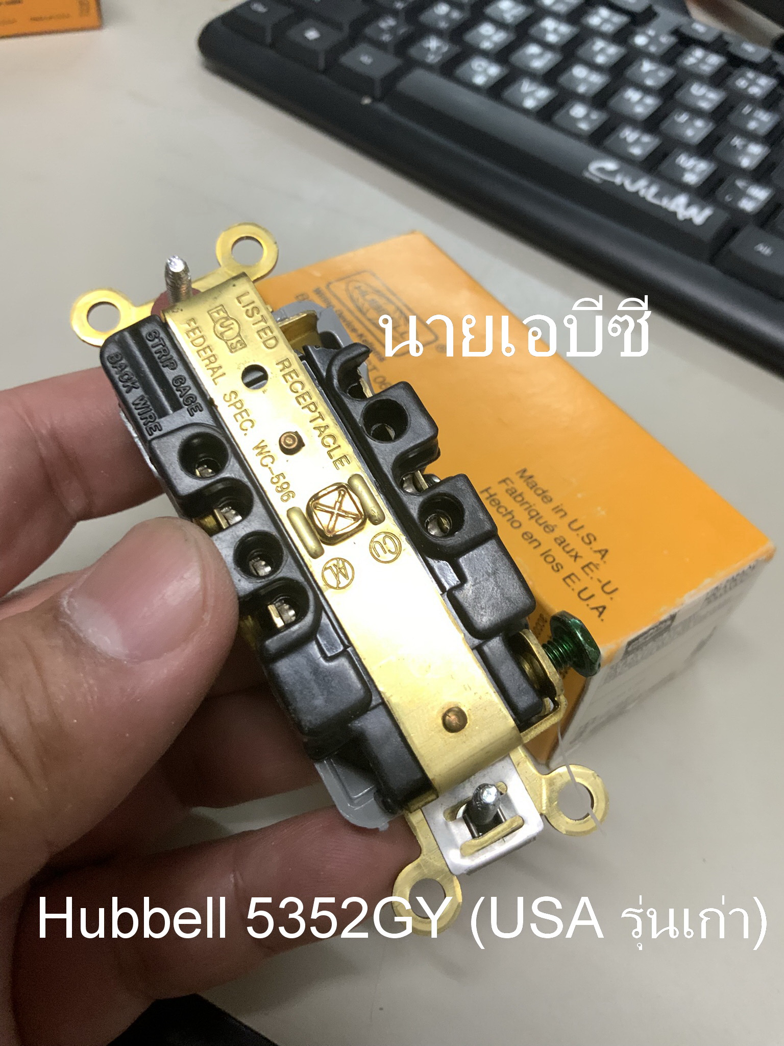 ปลั๊กผนัง Hubbell 5352GY (USA รุ่นเก่า) NOS สีเทา 20A มีตำหนิ