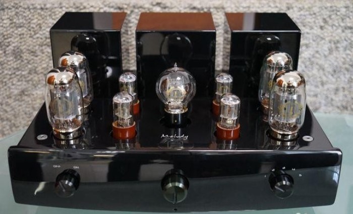 1. MELODY Astro Black 50 Push-Pull Vacuum Tube Integrated Amplifier European Edition ที่ผลิดออกมาเป็นพิเศษจำนวนจำกัดเพียงไม่กี่เครื่องทั่วโลก สำหรับนักฟังเพลงในกลุ่มประเทศยุโรป European Edition เท่านั้น จึงมีระดับคุณภาพเหนือกว่ารุ่นที่ส่งเข้าไปมาขายในกลุ่มประเทศเอเซีย รวมทั้งบ้านเรา ที่สำคัญยังเป็นหนึ่งใน Vacuum Tube Integrated Amplifier ที่มีรูปแบบการดีไซน์สวย โดดเด่นที่สุดในโลก ด้วยตัวเครื่องด้านหน้าโค้งเว้ามน ไม่ได้เป็นเหลี่ยมทื่อทั้งหมด ที่โดดเด่นสุด ๆ ก็คือ ติดตั้งหลอดคุณภาพเยี่ยมระดับชั้นนำของโลกที่หาได้ยากยิ่งทั้งสิ้นมากถึง 10 หลอด แบ่งเป็นหลอด Output KT88 จำนวน 4 หลอด, 6SJ7 4 หลอด, 101D 1 หลอด(ทรงกลม) 5881 4 หลอด(large power tubes), 12AX7 2 หลอด (preamp), 6922 4 หลอด (phase inverter) และ 12AU7 4 หลอด (driver) ด้วยพลังเสียงที่มากถึง 50 วัตต์ต่อข้าง ถือว่าสูงมากสำหรับแอมป์หลอดเลยทีเดียว ตัวเครื่องสีดำเคลือบเงามีขนาดใหญ่โตมโหฬาร และหนักมาก ตัวเครื่องกว้าง 43 สูง 22 ลึก 48 ซม. น้ำหนักประมาณ 30 กก.