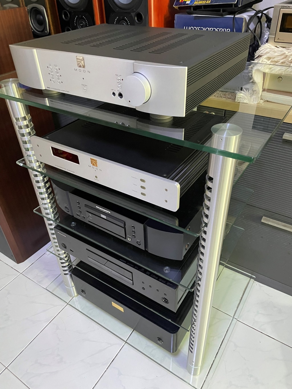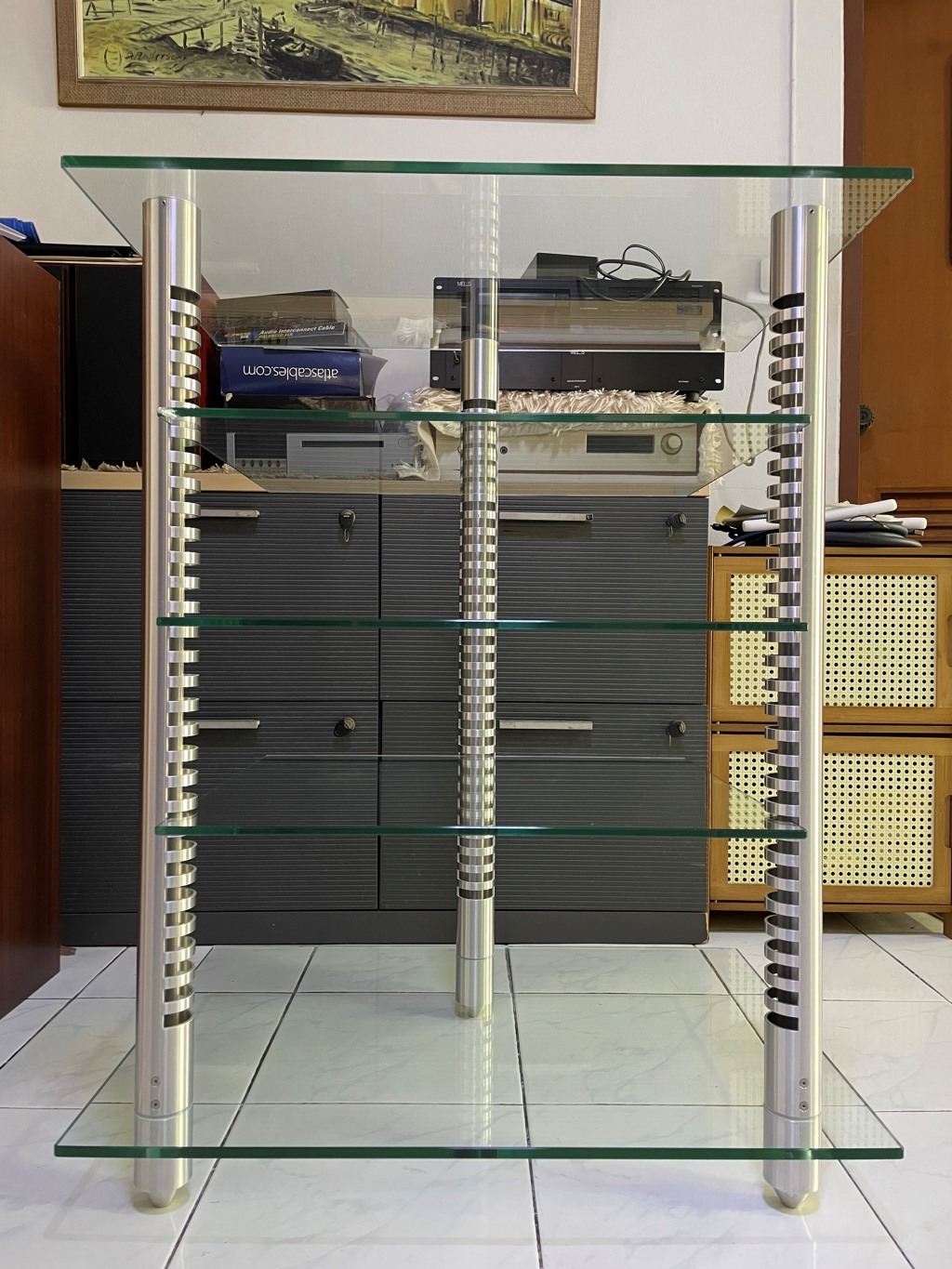 2.ขายชั้นวางเครื่องเสียง Liko Desing (Made in Germany) 5 ชั้น ชั้นบนสามารถวางทีวีก็ได้ งานดีสวยงามมาก เสาเป็น อลูมิเนียม วางเครื่องได้หลายชิ้นมาก กว้าง 70cm x ลึก 50cm x สูง 90cm ชั้นขยับตวามสูงได้ช่องละ