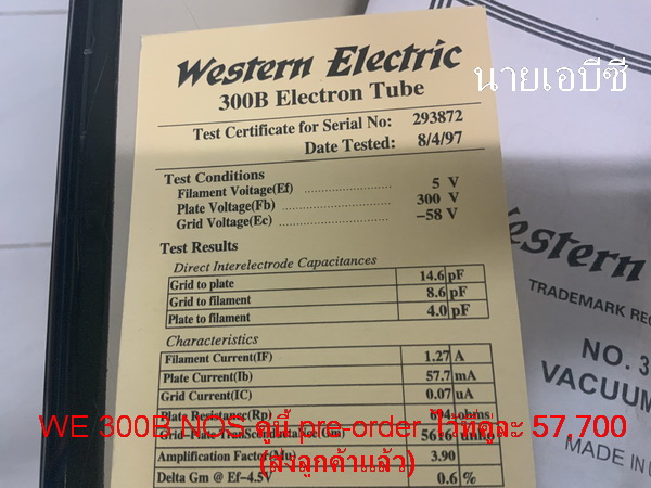 Western Electric 300B ผลิตปี 1997 NOS Matched pair