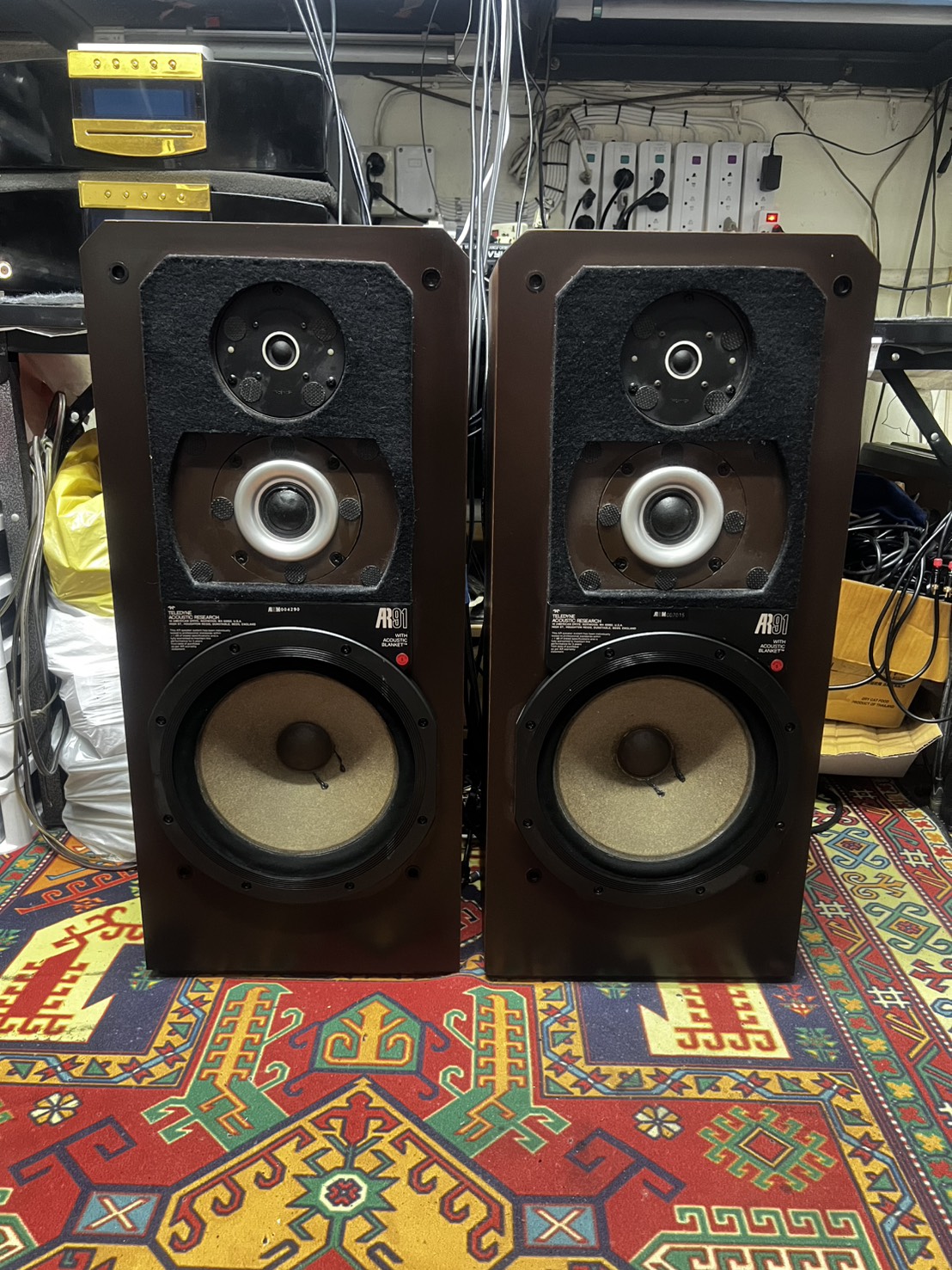 The AR-91 was a superb loudspeaker. It had the AR-9 generation 12” woofer and the same dome MR and tweeter as the 9. With its real-wood cabinet and beveled top corners, many people considered the 91 to be an attractive speaker as well, certainly more décor-friendly than the 9. They were manufactured when AR and others were making some of their best speakers. These are a one owner speaker and the pride of ownership is evident. Sonically, all drivers work and they sound superb. The woofer surrounds are original . The grills are also original and look good. These speakers sound super sweet and smooth. You need to hear them to believe the sound. The AR91 models would be a great speaker pair for the audiophile,