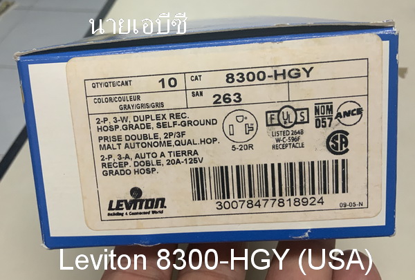ปลั๊กผนัง Leviton 8300-HGY (USA) สีเทา 20A ของใหม่