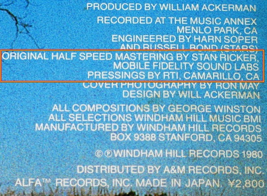 1980 Windham Hill (RTI Pressing) Japan
