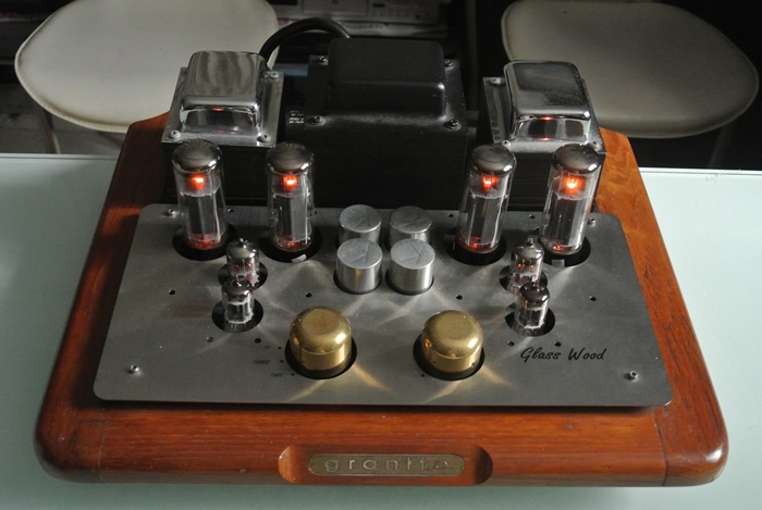 1. GRANITE Glass Wood สุดยอด Push-Pull Vacuum Tube Integrated Amplifier รุ่นสุดท้าย ผลงานชิ้น Masterpiece ที่มีรูปแบบการดีไซน์สวยงามระดับ State of The Art เลยทีเดียว ด้วยฐานไม้สักธรรมชาติสวย ภายในติดตั้งอุปกรณ์ วัสดุ ชิ้นส่วน และวงจรที่คัดสรรมาแต่ Audiiophile Grade ระดับโลกทั้งสิ้น ที่สำคัญยังติดตั้งหลอดชั้นนำของโลกจำนวน 8 หลอด 6L6XT x 4, 12AX7 x 2, 12AU7 x 2 อีกด้วย เพื่อให้ได้มาซึ่งสุดยอดสรรพเสียงระดับ Hi-End อย่างแท้จริง ด้วยพลังเสียง 40 วัตต์เต็มต่อข้าง สามารถต่อเชื่อมกับแหล่งเสียงหลัก ๆ ได้ทั้ง Tuner, CD, Tape, Aux ด้านหลังตัวเครื่องติดตั้ง Input และ Output Transformer ขนาดใหญ่วางเรียงกันเต็มพื้นที่ ตรงกลางข้างหลัง Transformer เป็นที่ติดตั้งซ็อคเก็ต IEC Inlet ชนิดสามขาพร้อมฟิวส์ชนิดสโลว์โบล์วขนาด 2 แอมป์ ข้างกันเป็นสวิตช์เปิด-เปิดเครื่องที่เป็นสวิตช์โยก (Toggle Switch) มีความแข็งแรงในการใช้งานสูง ทั้งคู่ถูกขนาบซ้าย-ขวาด้วยขั้วต่อสายลำโพง Binding Post ชนิดชุบทองเกรดดีมาให้ข้างละหนึ่งคู่ มาพร้อมฝาครอบ Acrylic ใสดีไซน์สวย ตัวเครื่องมีขนาดใหญ่ และหนักมาก กว้าง 43 สูง 22 ลึก 36 ซม. น้ำหนักประมาณ 20 กก.