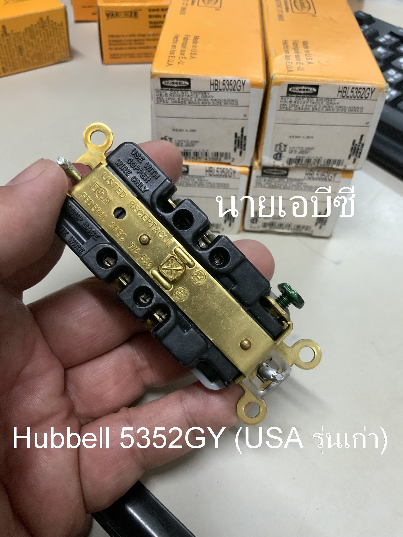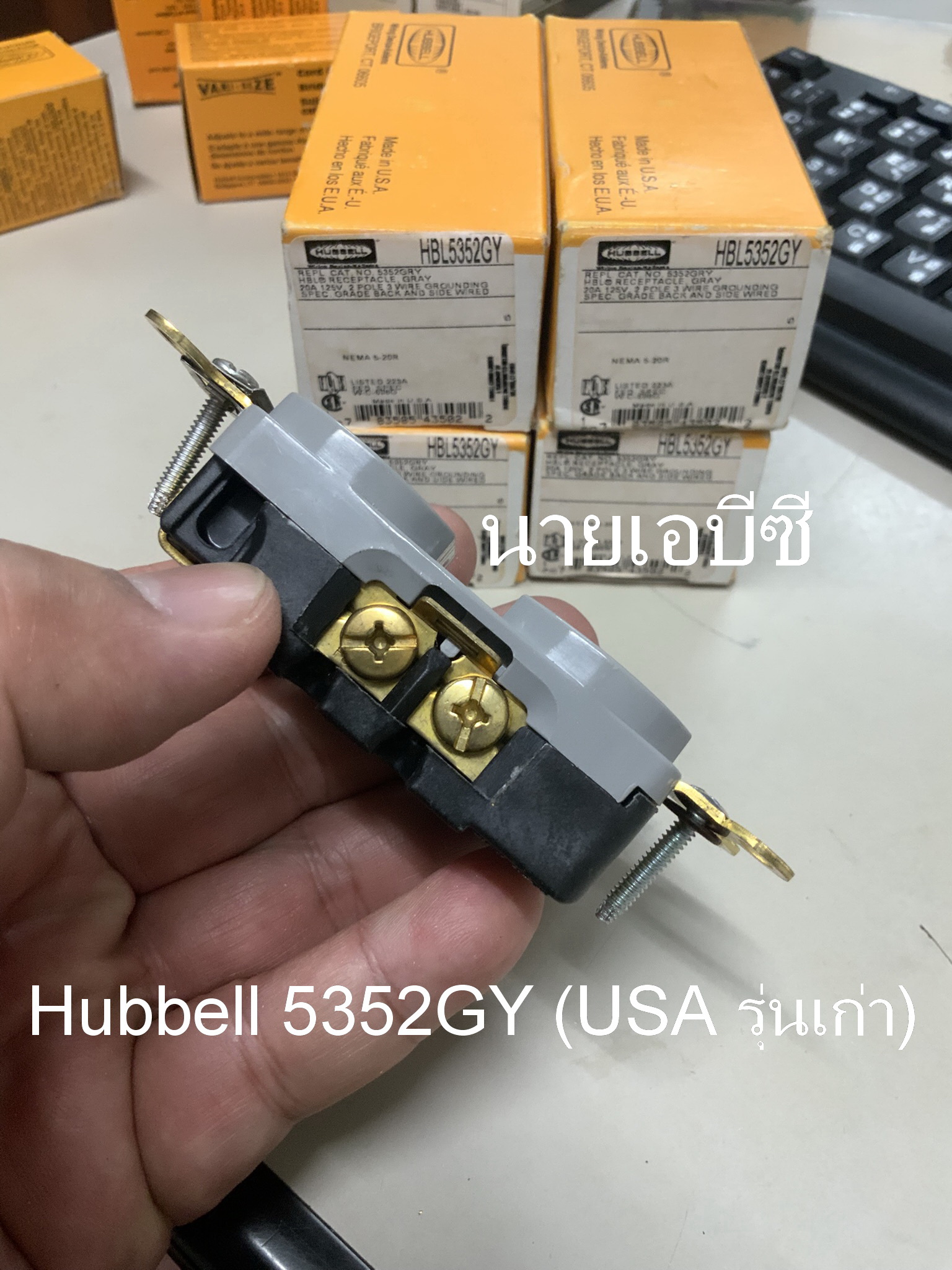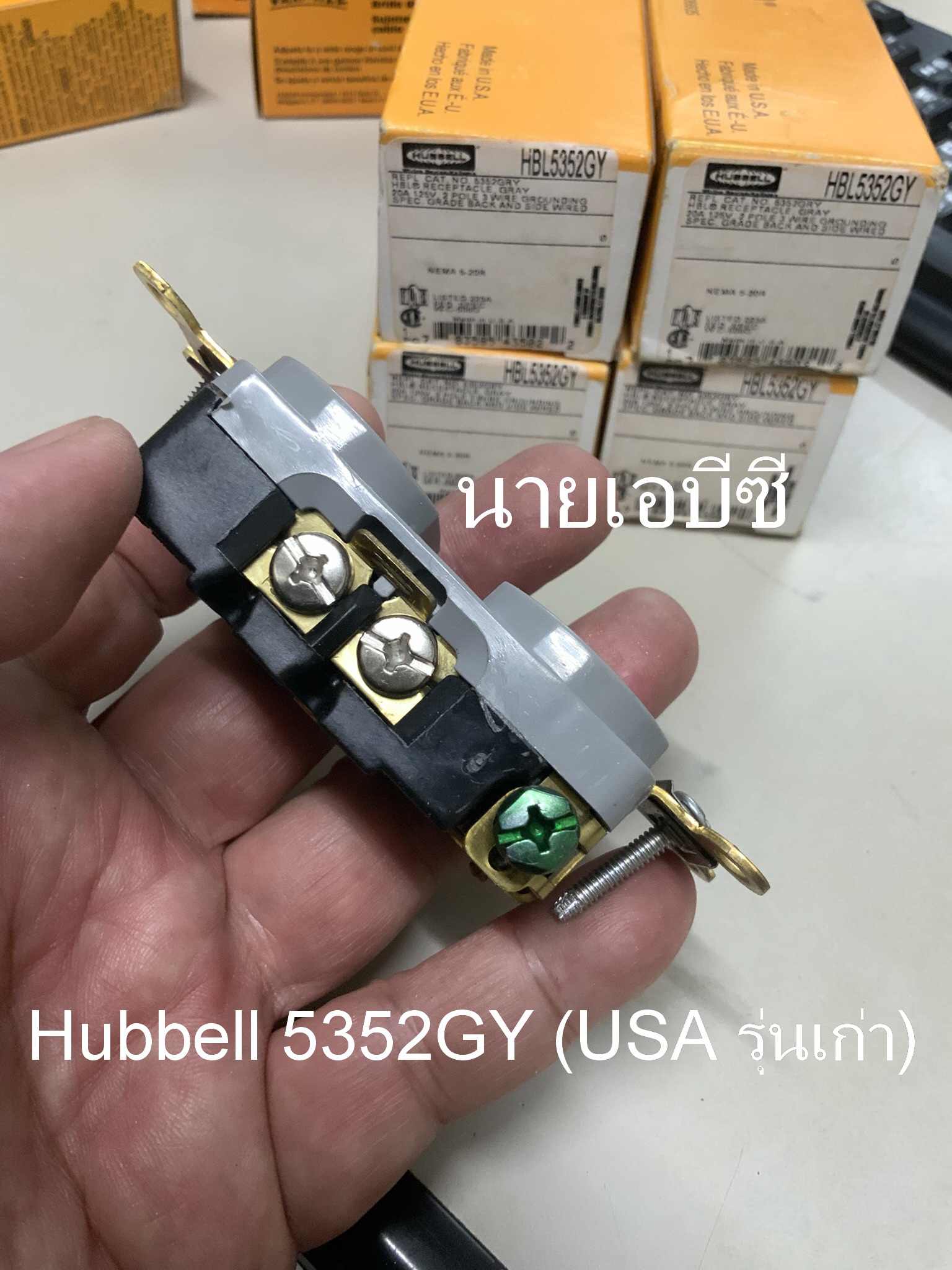 ปลั๊กผนัง Hubbell 5352GY (USA รุ่นเก่า) NOS สีเทา 20A