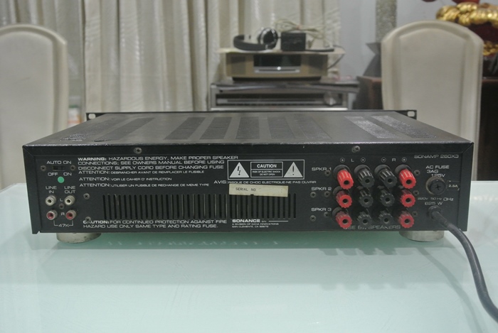 SONANCE Sonamp 260X3 ผลิต USA ใช้ไฟ 220V. ตัวเครื่องยังอยู่ในสภาพที่ดีมาก ปุ่มควบคุมการทำงานทั้งหมด ยังใช้ได้เป็นปกติอย่างมีประสิทธิภาพ