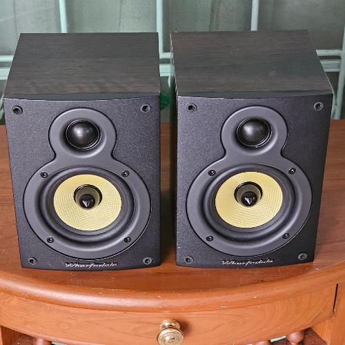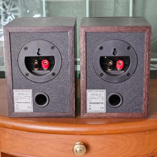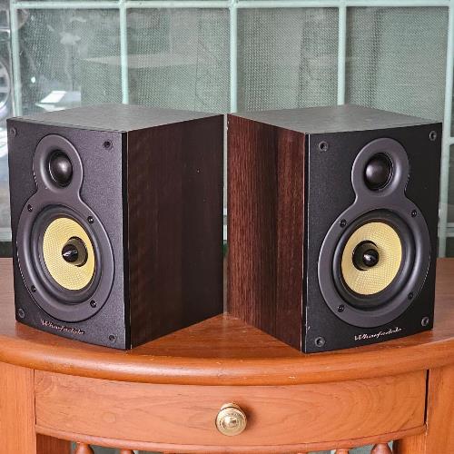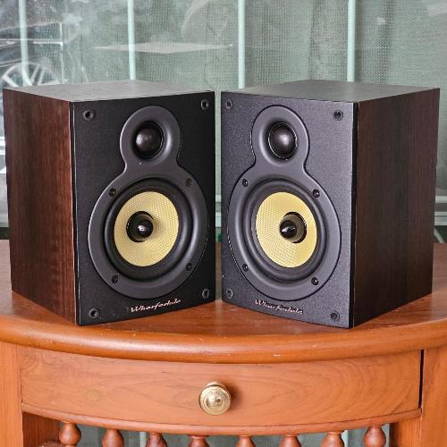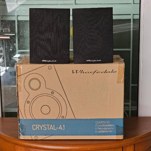 2. เข้าชุดด้วย WHARFEDALE Crystal 4.1 ลำโพงวางหิ้ง 2 ทางจากดินแดนผู้ดีประเทศอังกฤษ ติดตั้งดอกลำโพงเสียงสูงแบบ Soft Dome Tweeter ขนาด 1 นิ้ว และดอกลำโพงเสียงทุ้มกลางแบบ Keflar Cone Woofer ขนาด 4 นิ้วแกนกลางหัวกระสุน รับพลังเสียงได้ 60 วัตต์ต่อข้าง ด้วยความไวต่อเสียง Sensitivity ที่สูงถึง 95dB(Peak SPL) ตัวตู้ผลิตจากไม้ธรรมชาติสี Dark Walnut ลวดลายสวยงามเป็นอย่างมาก ตัวตู้มีขนาดใหญ่พอสมควร กว้าง 15 สูง 20 ลึก 16 ซม. หนักประมาณ 2 กก.