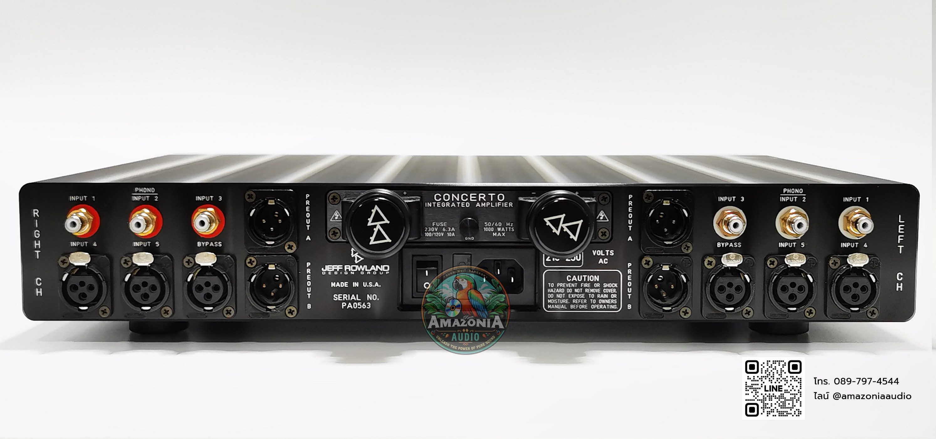 Jeff Rowland Concerto Integrated Amplifier ตัวเทพ สุดหายาก นักเล่นปล่อยน้อยมาก นานๆจะมีเข้ามาซักตัว ฟังเทียบแบบ Battle เพลงต่อเพลงกับ Integrated Amp. ระดับ Stereophile Class A Recommended Component ยี่ห้อ K*** และเป็น Int. Amp. วงจร Class A ด้วย รวมทั้ง Int. Amp. ของ Jeff รุ่นเก่ากว่าและรุ่นใหม่กว่า ปรากฎว่า นักเล่นที่ร่วมฟังด้วยกันต่างบอกเป็นเสียงเดียวกันว่า Concerto เสียงกินขาดทุกย่าน เบสดี ไดนามิคดี เสียงร้องลื่นไหล แหลมดี อิมเมจชัด ไม่ฟุ้ง สงัดกว่า รายละเอียดดีกว่าทุกย่าน ผมไม่แปลกใจเลยครับที่ผลิตแค่ช่วงเวลาสั้นๆระหว่างปี 2007 ถึง 2008 เพราะเสียงดีกว่ารุ่นอื่นที่ใหญ่กว่าของ Jeff เอง ในด้านการตลาดจะทำให้รุ่นใหญ่ขายยากกว่า ตัวเครื่องสวยมาก มีริ้วรอยจากการใช้งานบ้างเล็กน้อย ไฟบ้านเรา 220 โวลต์แท้ๆ ไม่เคยเสียหรือซ่อมใดๆ