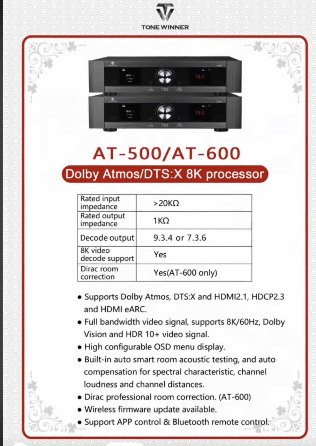 บัดนี้ทาง Tonewinner ได้เปิดตัวปรีโปรรุ่นใหญ่รองท๊อปขึ้นมาอีกรุ่น คือ AT-500 ซึ่งมีจุดมุ่งหมายให้เป็นหนึ่งในปรีโปรที่ดีที่สุดในตลาดในระดับสองแสนบาทลงมา! หลังจากทดสอบไปได้ห้าชั่วโมงแรกของเครื่อง เรายืนยันได้ว่า AT-500 มีความสามารถและคุณภาพตามที่โรงงานกล่าวอ้างมาทุกประการ ภาพและเสียงดีกว่า AT-300 ขึ้นมาอีกระดับหนึ่ง - "อย่างชัดเจน"