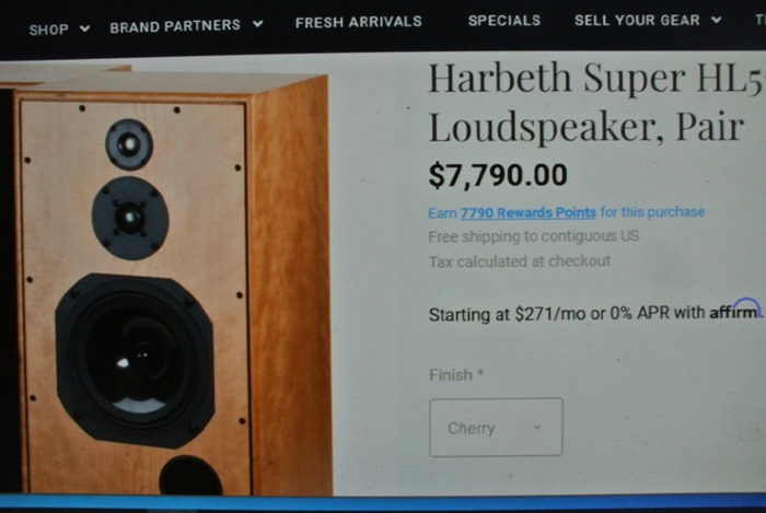 จุดเด่นอยู่ที่ดอกลำโพงเสียงทุ้มที่ผลิตจจากวัสดุชนิดพิเศษ TPX แบบ Doped bextrene cone woofer ขนาด 8 นิ้วที่โดดเด่นด้วย แกนหัวตัด Core Phase Plug อยู่กลางกรวย ที่กล่าวกันว่า ให้คุณภาพเสียงเหนือกว่า แบบหัวกระสุน Bullet Phase Plug เป็นอย่างมาก และดอกลำโพงเสียงสูงแบบ Aluminum-dome tweeter ขนาด 1 นิ้ว หุ้มรอบ dome ด้วยแผ่นตาข่ายชนิดพิเศษ Mesh grille เพื่อป้องกันความเสียหายจากการสัมผัส กระแทก หรือโดนนิ้วจิ้มได้เป็นอย่างดี ตัวตู้ผลิตจากไม้ธรรมชาติเนื้อดีคุณภาพเยี่ยมสี Cherry ลวดลายสวยงาม ขนาดกว้าง 28 สูง 5 2ลึก 32 ซม. น้ำหนักประมาณ 13 กก. มาพร้อมขาตั้งลำโพง HARBETH ตรงรุ่นของแท้ผลิต England