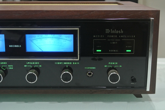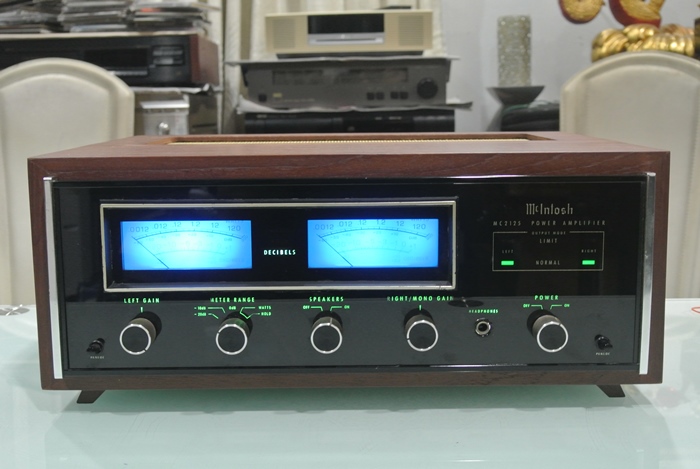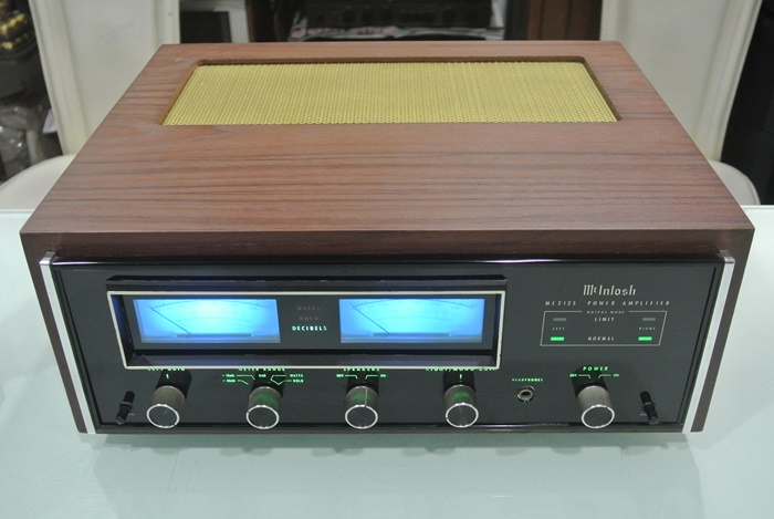 1. McINTOSH MC-2125 Stereo Power Amplifier ระดับ Hi-End ที่โดดเด่นด้วยจอเข็ม VU Meter ขนาดใหญ่ 2 ช่องแสดงความดังของลำโพงทั้งสองข้างเป็นไฟสีฟ้าไว้อย่างสวยงามงามอลังการ มองเห็นได้อย่างชัดเจน ให้พลังเสียงได้สูงสุด 150 วัตต์ต่อข้าง ตัวเครื่องพร้อมกล่องไม้หุ้มรอบมีขนาดใหญ่ และหนักมากยกคนเดียวไม่ไหว กว้าง 44 สูง 19 ลึก 38 ซม. น้ำหนักประมาณ 33 กก.