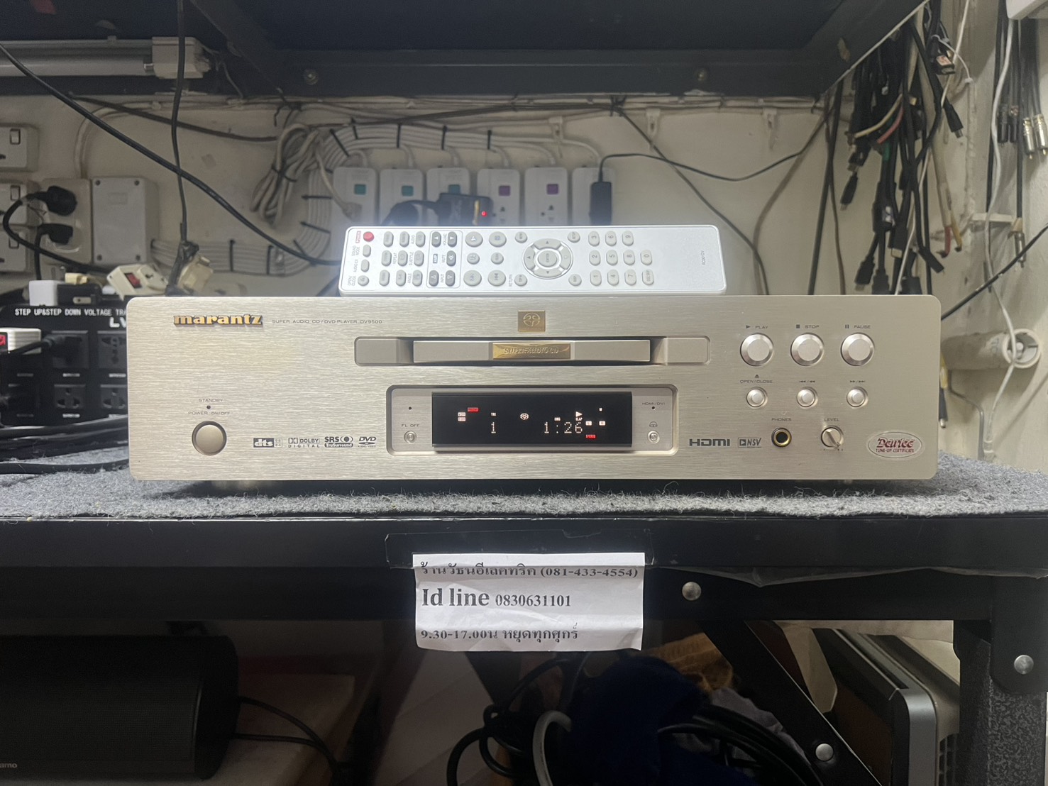 MARANTZ DV 9500 MADE IN JAPAN TOP OF THE LINE *รุ่นสุดท้ายหายากใหม่กว่า 9500 เครื่องเล่น UNIVERSAL MULTI MEDIA PLAYER รุ่นใหญ่สุดตัวFLAGSHIP *รุ่นเรือธง SERIES 9XXX* ไม่มีใหญ่กว่านี้อีกแล้ว + รีโมท ไฟ 220v อ่านแผ่นเร็วมากทุกแผ่นทั้งCD / SA-CD / DVD / VCD / MP-3 ๆลๆ งานHI-ENDแท้AUDIOเกรดทุกชิ้น ตัวเครื่องขนาดใหญ่สุด+หนักสุด ขั้วทองหลังเครื่องทุกตัว เอาไปฟังเพลงอย่างเดียวเสียงดีระดับCD / SA-CD รุ่นใหม่ต่ำกว่า4-5หมื่นทุกยี่ห้อสู้ไม่ได้เลย ออกใหม่ 89000.-เจ้าของส่งมาฝากขายหน้าร้านถูกที่สุดเหลือเพียง 18900.-เท่านั้น*เอาไปดูหนัง เอาไปฟังเพลง คุ้มราคาที่สุด งานJAPANแท้ไม่ใช่ CHINA*
