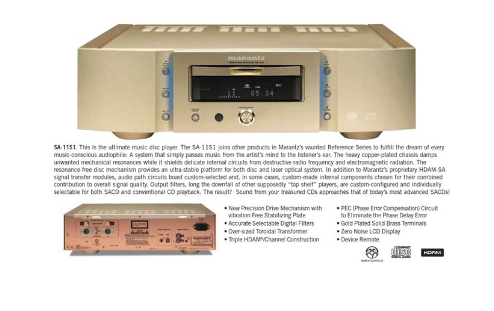MARANTZ SA11S1 MADE IN JAPAN *ไม่ใช่รุ่นเล็ก SA15S1* มาพร้อมสัญญาณ XLR BALANCED *ไม่มีในรุ่นกลาง/รุ่นเล็ก* ไฟ 220v + รีโมท ตัวถังทองแดง ฟังเพลงเสียงดีสุดยอด 5ดาวระดับโลก ใช้งานเหมือนใหม่ อ่านทุกแผ่นทั้ง MASTER / COPY / WRITE / CD / SA-CD ๆลๆ ออกใหม่ 160000.-เจ้าของส่งมาขายหน้าร้านถูกที่สุดเพียง 29900.-เท่านั้น