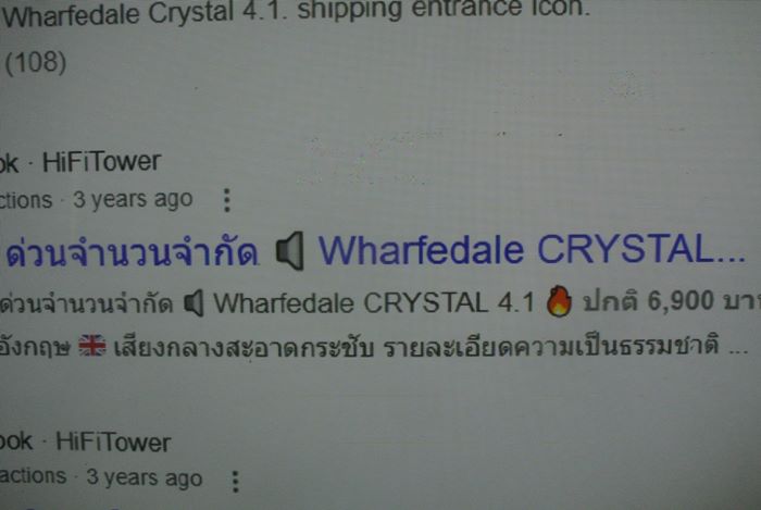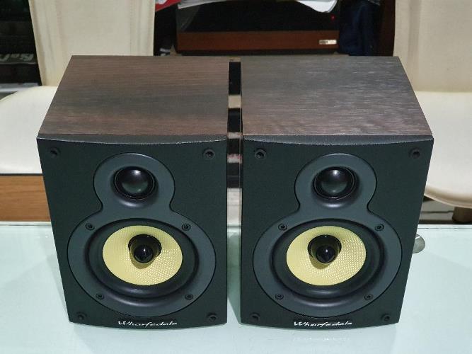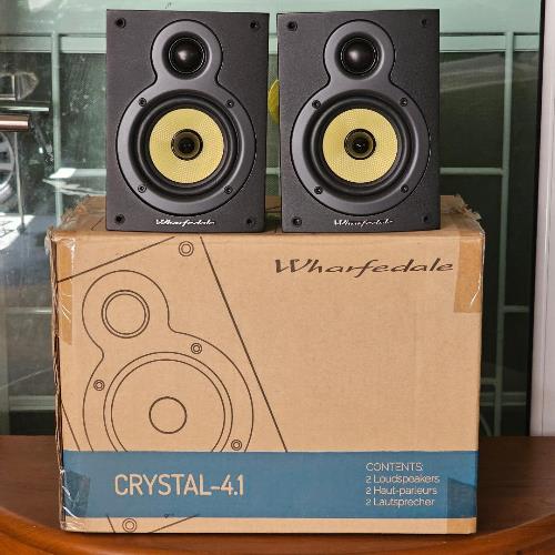 2. เข้าชุดด้วย WHARFEDALE Crystal 4.1 ลำโพงวางหิ้ง 2 ทางจากดินแดนผู้ดีประเทศอังกฤษ ติดตั้งดอกลำโพงเสียงสูงแบบ Soft Dome Tweeter ขนาด 1 นิ้ว และดอกลำโพงเสียงทุ้มกลางแบบ Keflar Cone Woofer ขนาด 4 นิ้วแกนกลางหัวกระสุน รับพลังเสียงได้ 60 วัตต์ต่อข้าง ด้วยความไวต่อเสียง Sensitivity ที่สูงถึง 95dB(Peak SPL) ตัวตู้ผลิตจากไม้ธรรมชาติสี Dark Walnut ลวดลายสวยงามเป็นอย่างมาก ตัวตู้มีขนาดใหญ่พอสมควร กว้าง 15 สูง 20 ลึก 16 ซม. หนักประมาณ 2 กก.