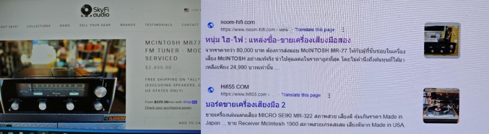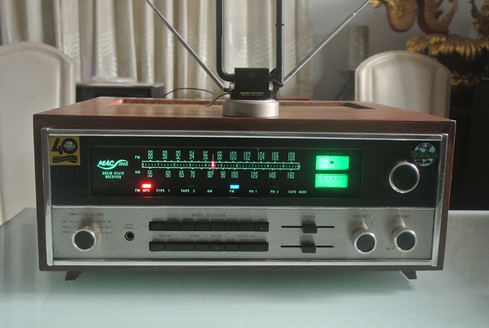 McINTOSH MR-77 ผลิต USA ใช้ 220V ตัวเครื่อง และกล่องไม้ธรรมชาติยังอยู่ในสภาพสวยสมบูรณ์ ไฟทุกดวง รวมทั้งไฟ Stereo ยังติดสว่างไสว ปุ่มควบคุมการทำงานทั้งหมด ยังใช้งานได้เป็นปกติ