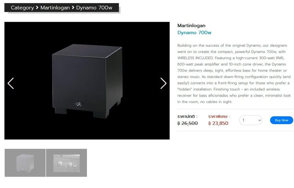 Martin logan dynamo 700w subwoofer hi-end จาก usa เครื่องบ้านเรา ไฟ 220V DRIVER 10" กำลังขับ300วัตต์ rms พีคสุดได้ถึง 700วัตต์ เบสเคลียร์ นุ่มลึก กระชับลงตัว ต่อสายได้ปกติเหมือนSUBWOOFERทั่วไป สามารถปรับขาให้เป็นยิงหน้าหรือยิงลงพี้นได้ตามใจชอบ ออกใหม่ 28900.-เจ้าของส่งมาขายหน้าร้านถูกที่สุดเพียง 12900.-เท่านั้น*