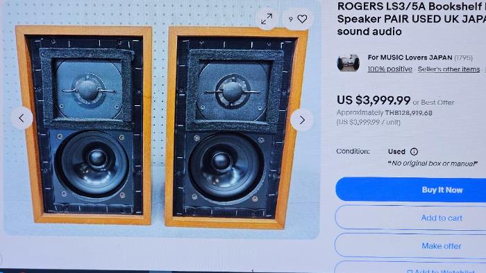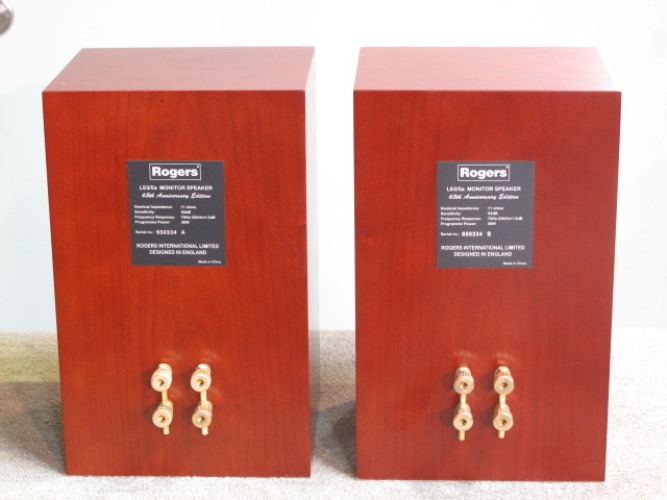 1. ROGERS LS3/5A 65th Anniversary Version ลำโพงจตุรเทพ Two-way infinite baffle (closed box) Monitor Speaker ขนาด Bookshelve 2 ทางระดับ Hi-End ราคาแพงสุดโต่ง รุ่นพิเศษครบรอบ 65 ปี ที่ได้รับการยกย่องจากนักวิจารณ์เครื่องเสียงชั้นนำทั่วโลก และได้รับการยอมรับจาก BBC สถานีวิทยุแห่งประเทศอังกฤษให้เป็นลำโพงวางหิ้งคุณภาพเสียงดีที่สุดในโลก จุดเด่นของ ROGERS ก็คือดอกลำโพง LS3/5A รุ่นชื่อก้องโลกอันลือลั่นสนั่นปฐพีแบบ Doped bextrene cone woofer ขนาด 5 นิ้วครึ่ง ที่กล่าวกันว่า ให้รายละเอียดของเสียง ไม่ว่าจะเป็นเสียงร้อง หรือดนตรีบรรเลงได้ดี และสมบูรณ์ที่สุดในโลก ผนวกด้วยดอกลำโพงเสียงสูงแบบ Mylar dome tweeter ขนาด 1 นิ้วครึ่ง หุ้มด้วยแผ่นตาข่ายชนิดพิเศษ Mesh grille ที่ได้รับการกล่าวขานว่า ให้เสียงที่สดใส ชัดเจน บริสุทธิ์ เที่ยงตรงมากที่สุดในโลก สามารถรองรับพลังเสียงได้สูงสุดที่ 100 วัตต์เต็มต่อข้าง ด้วยความไวต่อเสียง 83dB ตัวตู้ผลิตจากไม้ธรรมชาติคุณภาพพิเศษสี Cherry ลวดลายสวยงามมาก กว้าง 20 สูง 31 ลึก 17 ซม. น้ำหนักประมาณ 7 กก.ต่อตู้ ตัวตู้ หน้ากาก และดอกลำโพงทั้งหมดยังอยู่ในสภาพที่สวยงามมาก