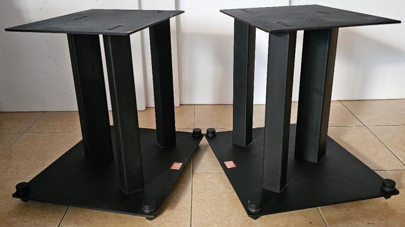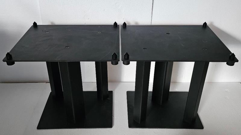 1. ขาตั้งลําโพง JBL รุ่นใหญ่ดีไซน์ 3 เสาผลิต USA จากโลหะคุณภาพดีหนักมากประมาณ 15 กก.ต่อข้าง ความสูง 16 นิ้ว ฐานบนสำหรับวางลำโพงกว้าง 36 ลึก 29 ซม. ฐานล่างตั้งบนพื้นกว้าง 44 ลึก 37 ซม. มาพร้อม Spike ขนาดใหญ่มีฝาครอบปิดด้านบน