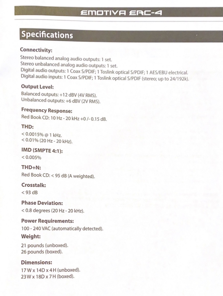 EMOTIVA ERC-4 เครื่องเล่น CD สภาพสวย อุปกรณ์ครบ รับประกัน1ปี ขาย 29,900.- ราคาต่อรองได้ ติดต่อ ต้อม 089-530-1431