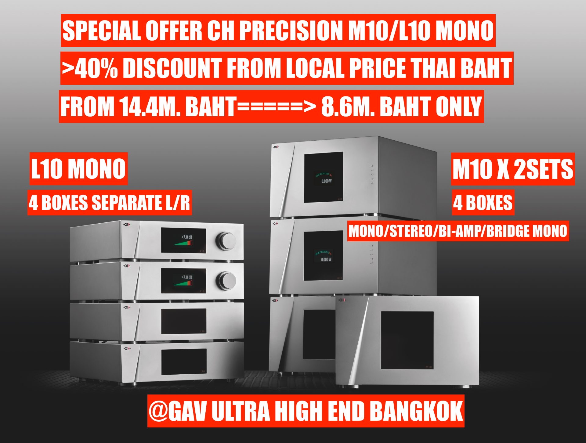 - M1.1 (STEREO AMP) Fully loaded for Bi-amp , True Mono & Bridge Mono x 2 units ราคา $105,000 ราคาปรกติ 4,200,000 บาท ลดเหลือ 2,000,000 บาท