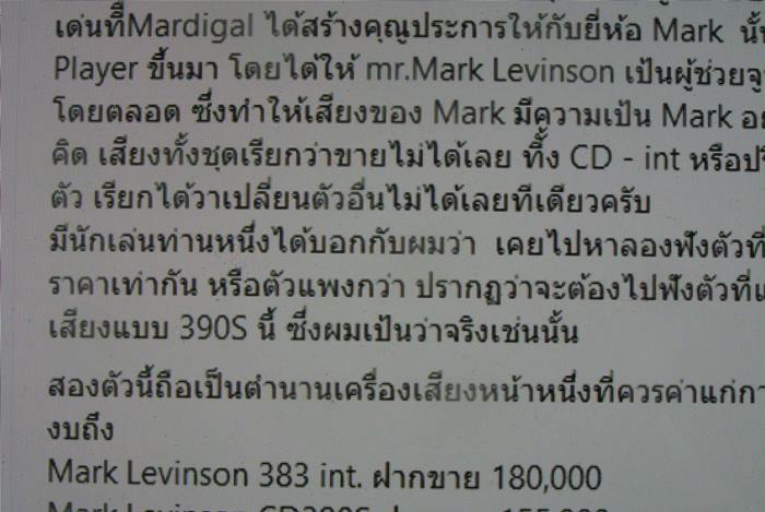 แม้แต่ราคามือสอง MARK LEVINSON NO.383 รุ่นธรรมดา ไม่มีอักษร L ต่อท้ายของผู้ขายรายอื่นในบ้านเรา 180,000 บาท แพงกว่าถึงกว่า 40,000 บาทเลยทีเดียว