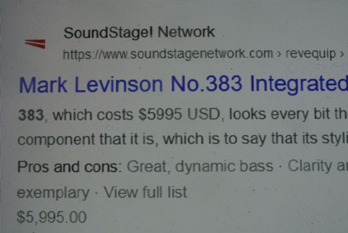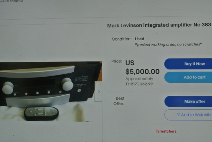 ราคามือสอง MARK LEVINSON NO.383 รุ่นธรรมดา ไม่มีอักษร L ต่อท้ายใน e-bay US $5,000.00 หรือประมาณ 180,000 บาท ยังไม่รวมภาษีฯ และค่าขนส่งอีก 10,000 บาท