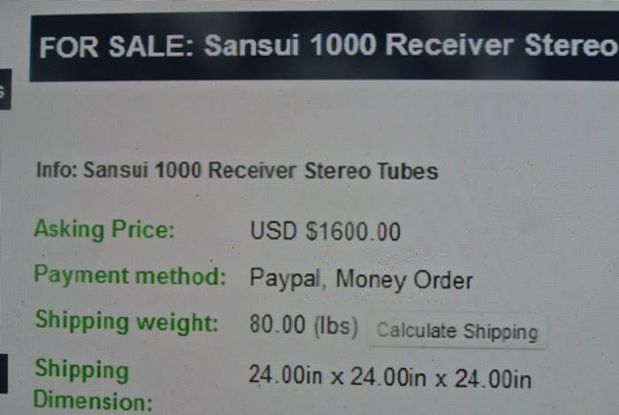 ราคานี้ยังถูกกว่าเครื่องมือสองที่ขายทั้งภายในบ้านเรา และในต่างประเทศถึงกว่า 2 เท่าตัว หรือครึ่ง 100,000 บาทเลยทีเดียว เป็นอีกหนึ่ง Tube Stereo Receiver ที่นักฟังเพลงระดับหูทองฝังเพชรต่างกล่าวว่า หากจะเป็นนักสะสมเครื่องเสียงตัวจริง จะต้องมี SANSUI 1000A เครื่องเสียงหลอดนี้อยู่ในครอบครองด้วย ถึงจะสมบูรณ์แบบครบถ้วนอย่างแท้จริง