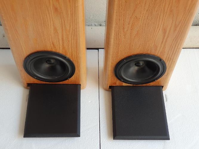 มาพร้อมแผ่นฐานรองสีดำสามารถใส่เข้า และดึงออกมาได้ สำหรับสอดเข้าไปในช่องด้านหลังตู้ นอกจากจะทำให้ตู้ลำโพงตั้งได้มั่นคงแล้ว ยังทำให้ตู้ลำโพงเอนไปด้านหลัง เพื่อให้ได้มาซึ่งสุดยอดมิติเสียงตามอีกด้วย