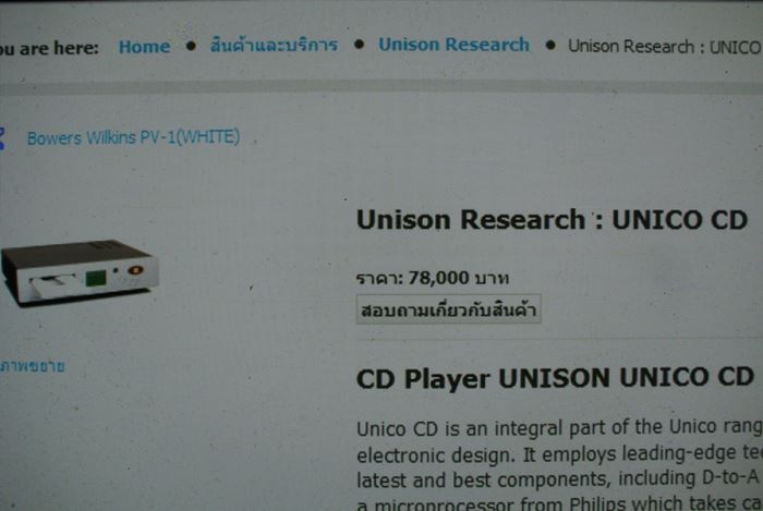 แม้แต่ราคาขายเฉพาะ Unison Research Unico CD เพียงเครื่องเดียวของผู้จำหน่ายในบ้านเรา 78,000 บาท